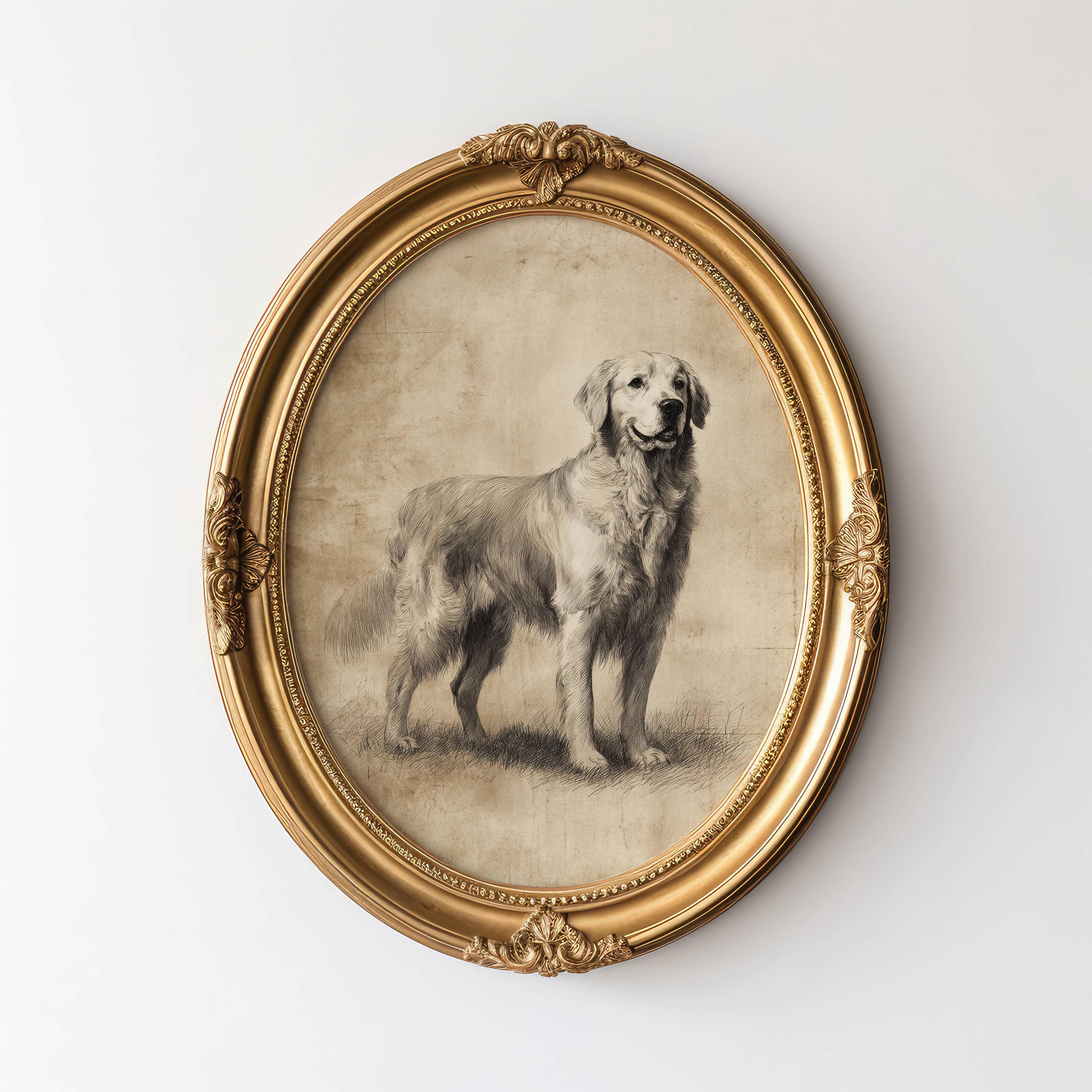 Vintage Golden Retriever Sketch, Dog Wall Art, Golden Wall Art Prin...