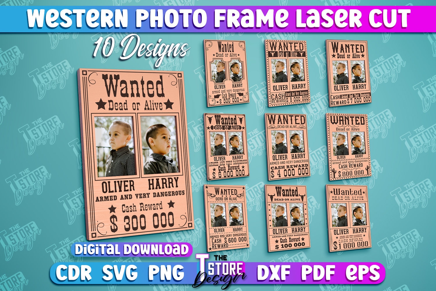 Western Photo Frame Laser Cut Bundle, Wanted Sign Photo Frame Laser...