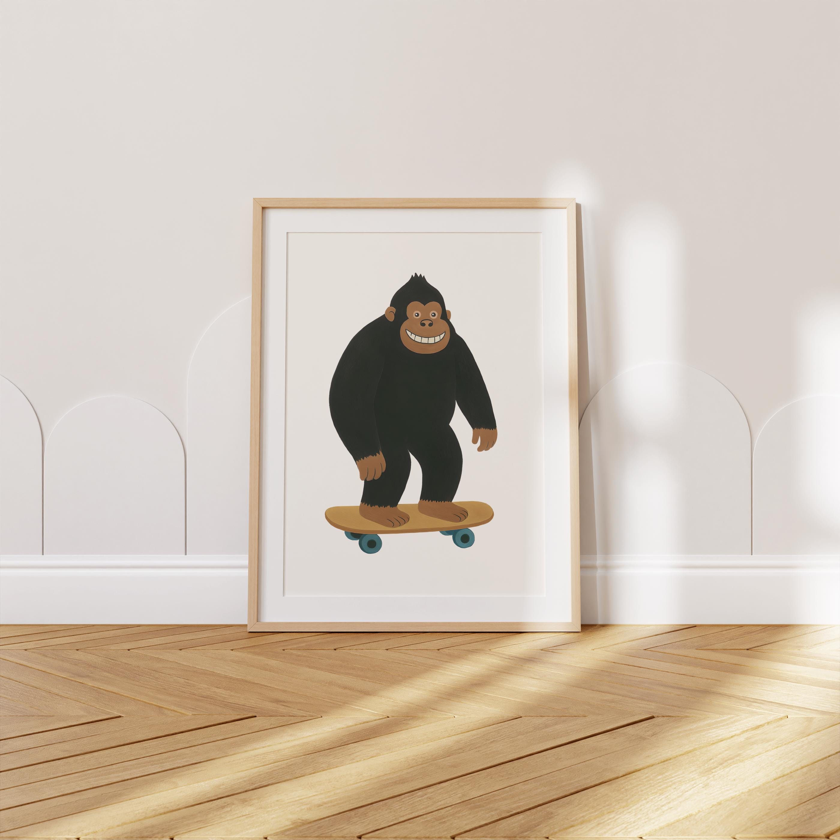 "Gorilla on Skateboard Digital Poster - Playful Animal Wall Art for Kids' Rooms, Nurseries &...