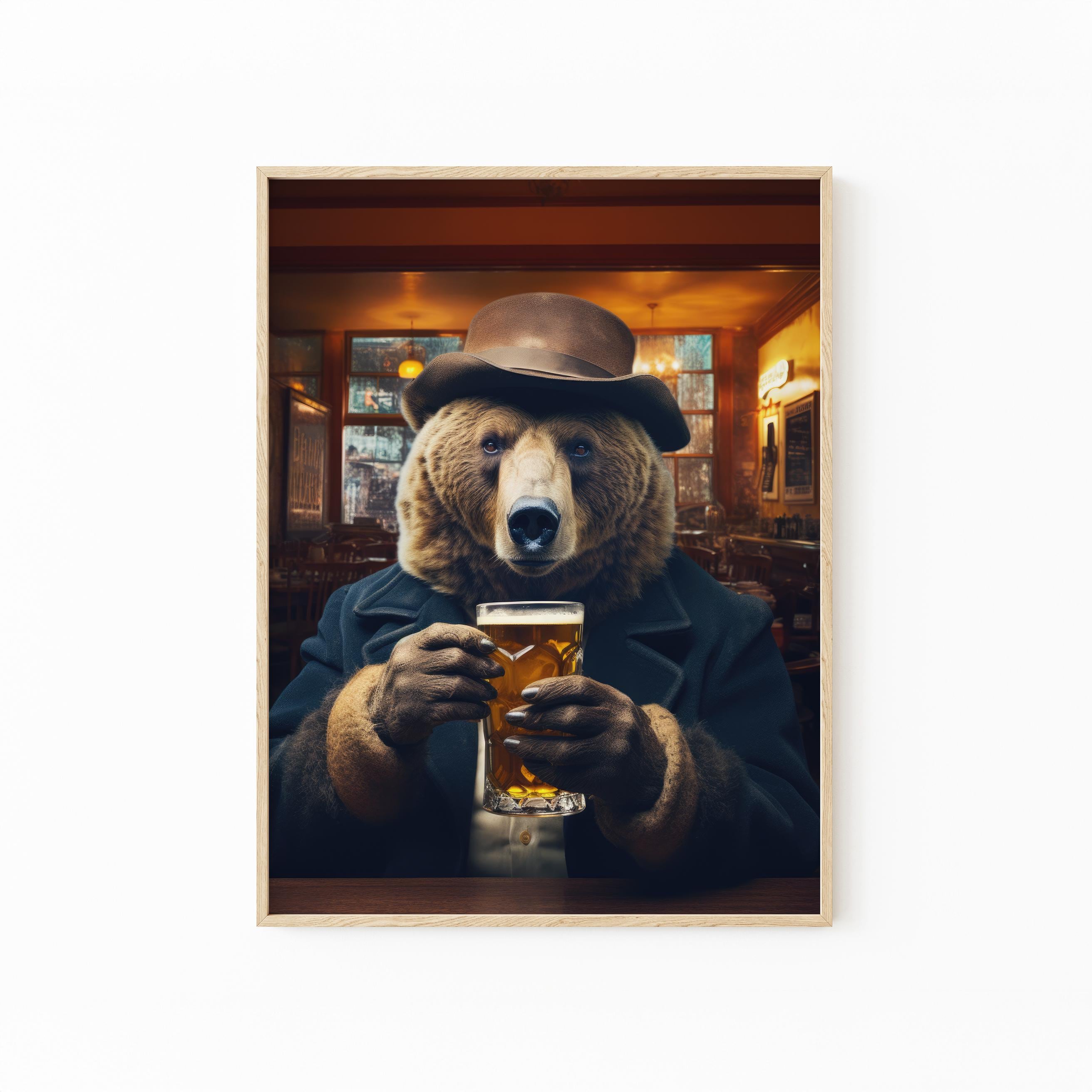 Funny Animals Bear Drinking Beer Oil Painting Print, Beer Wall Art,...