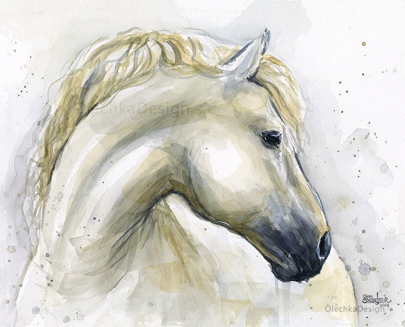 Horse Watercolor Painting Art Print Watercolor Horse Painting White Horse Artwork Giclee Art Print o...