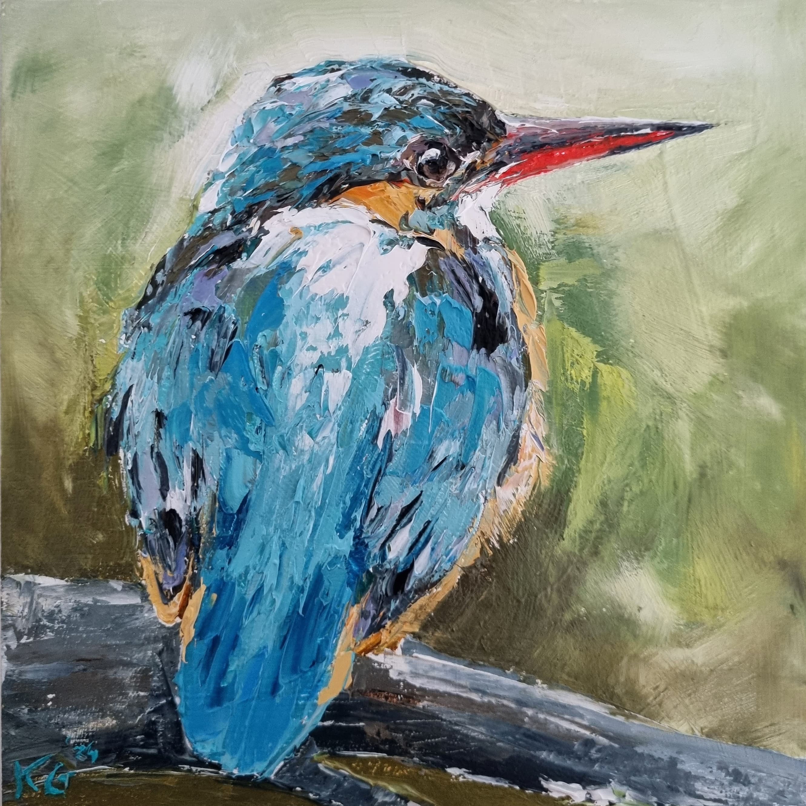 Kingfisher Painting, Bird Portrait, Wildlife Oil Painting on 15x15c...