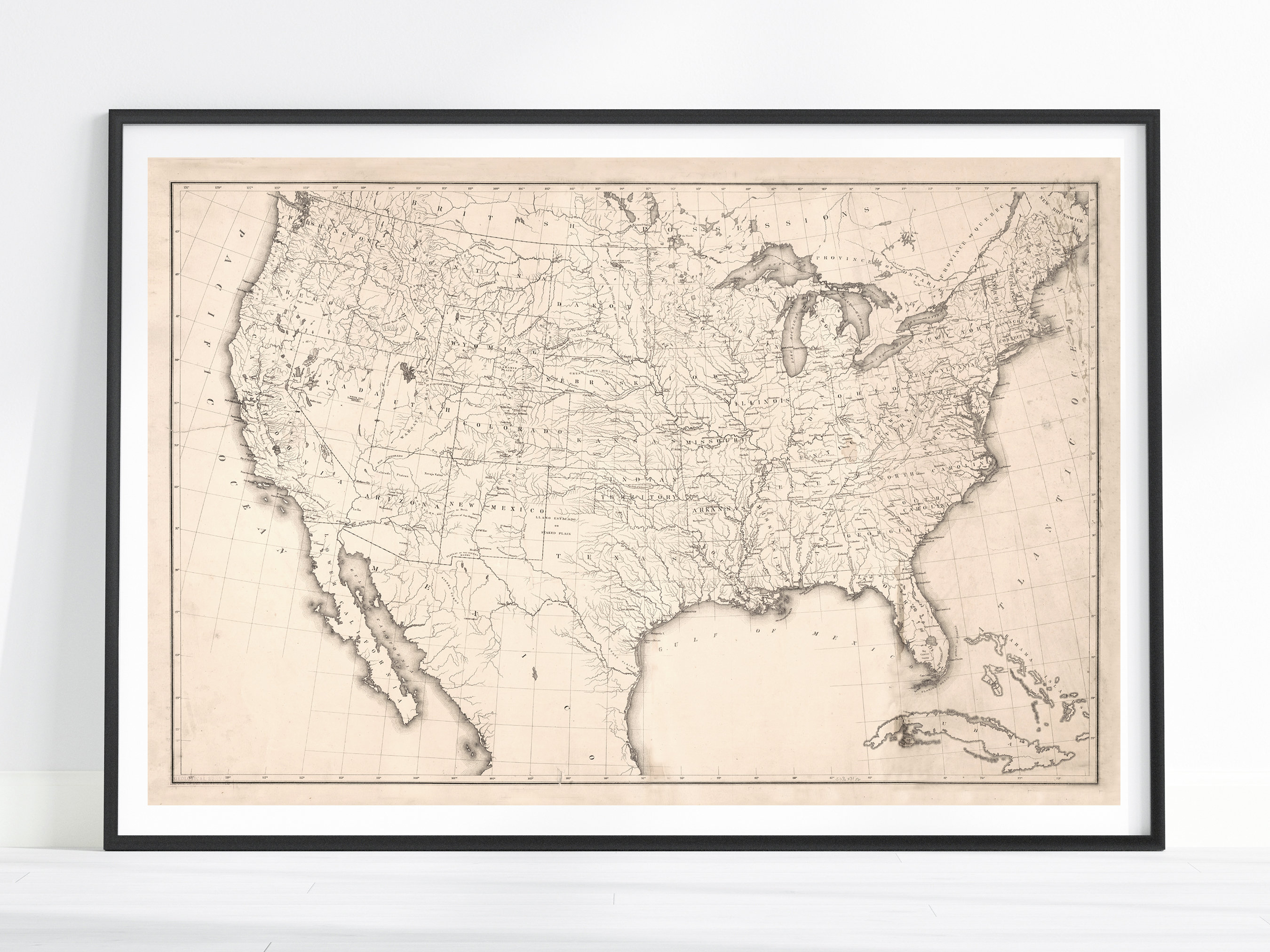 "1880 Vintage United States Map Print FREE SHIPPING on All Posters and Canvas - US & Canada...