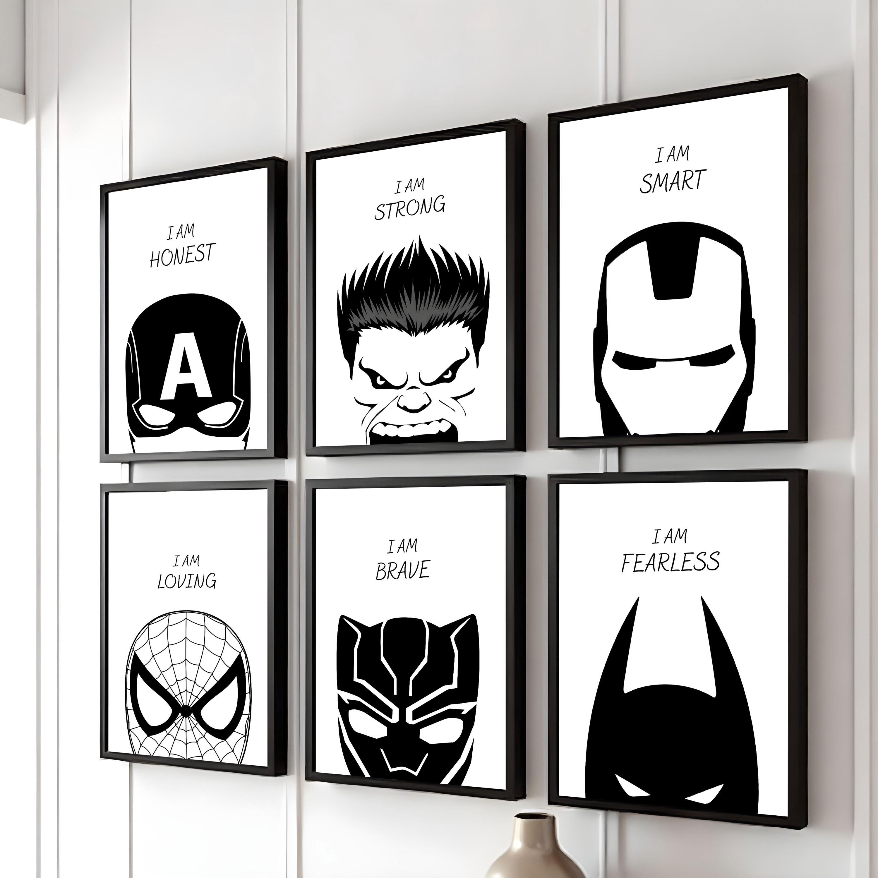 Avengers Symbols, Superhero Wall Print Set Of 6 Prints, Motivationa...