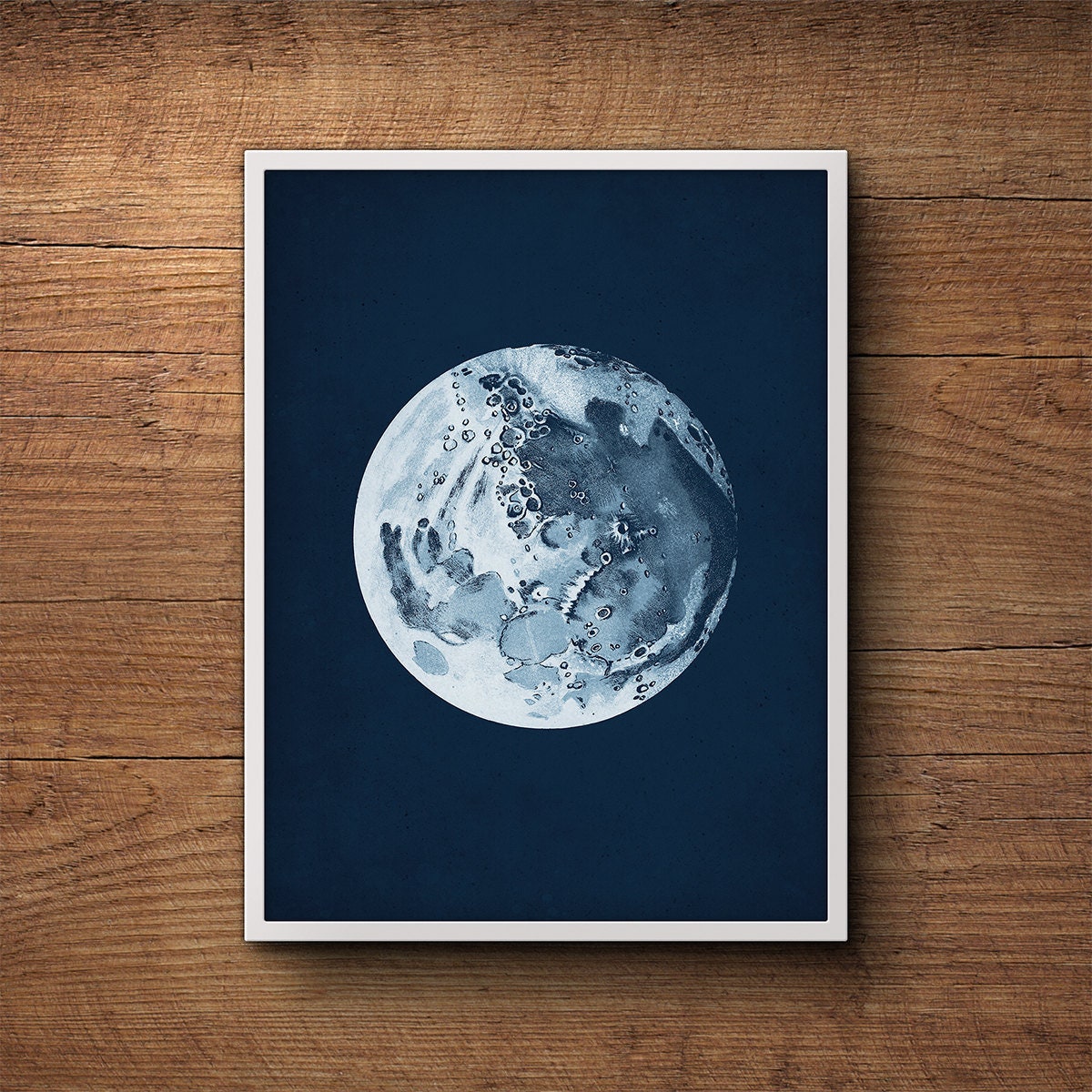 Moon Art Print, Blue Moon Wall Decor, Full Moon Poster, Full Moon P...