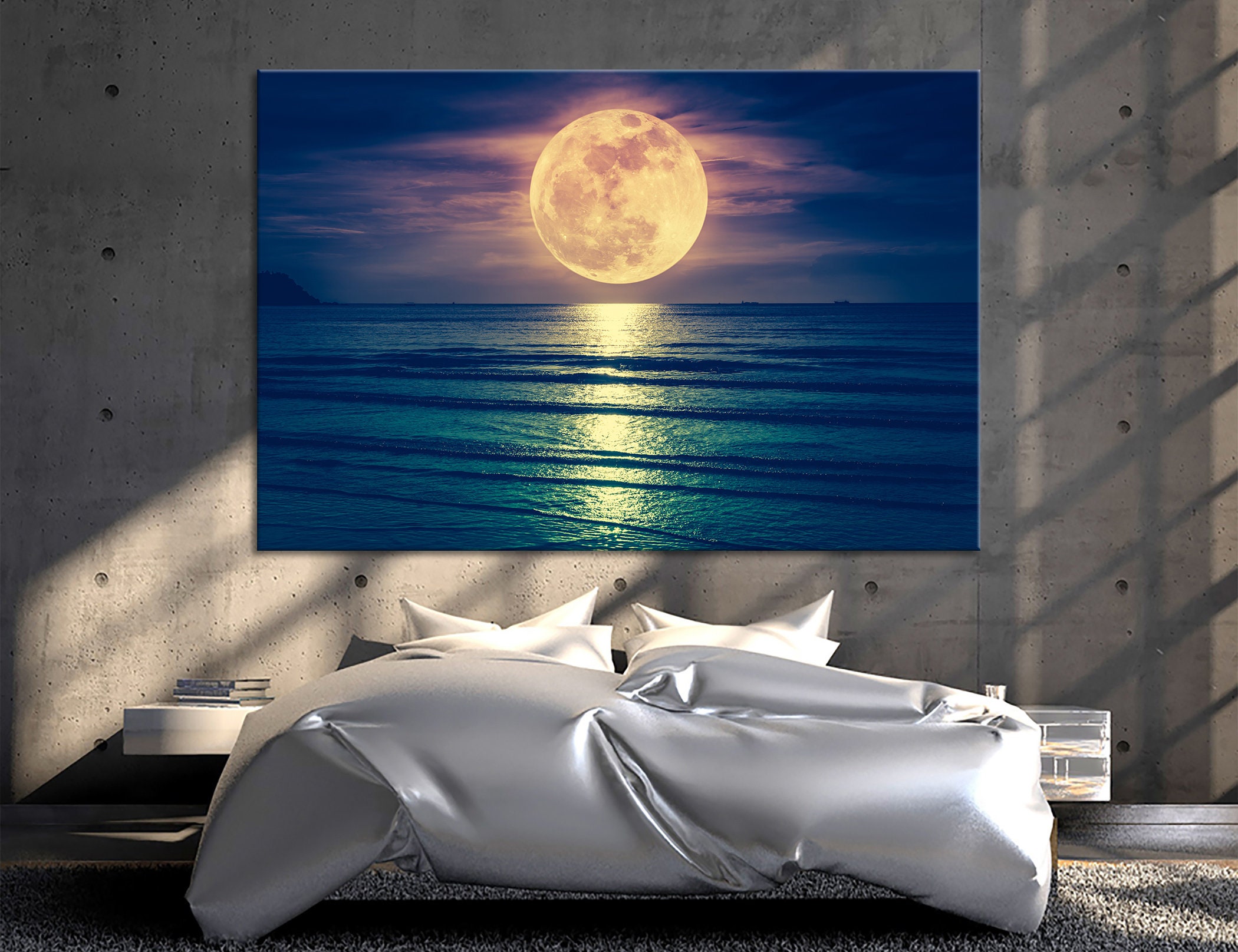 Huge Full Moon Over the Sea Full Moon Wall Art Full Moon Wall Decor...