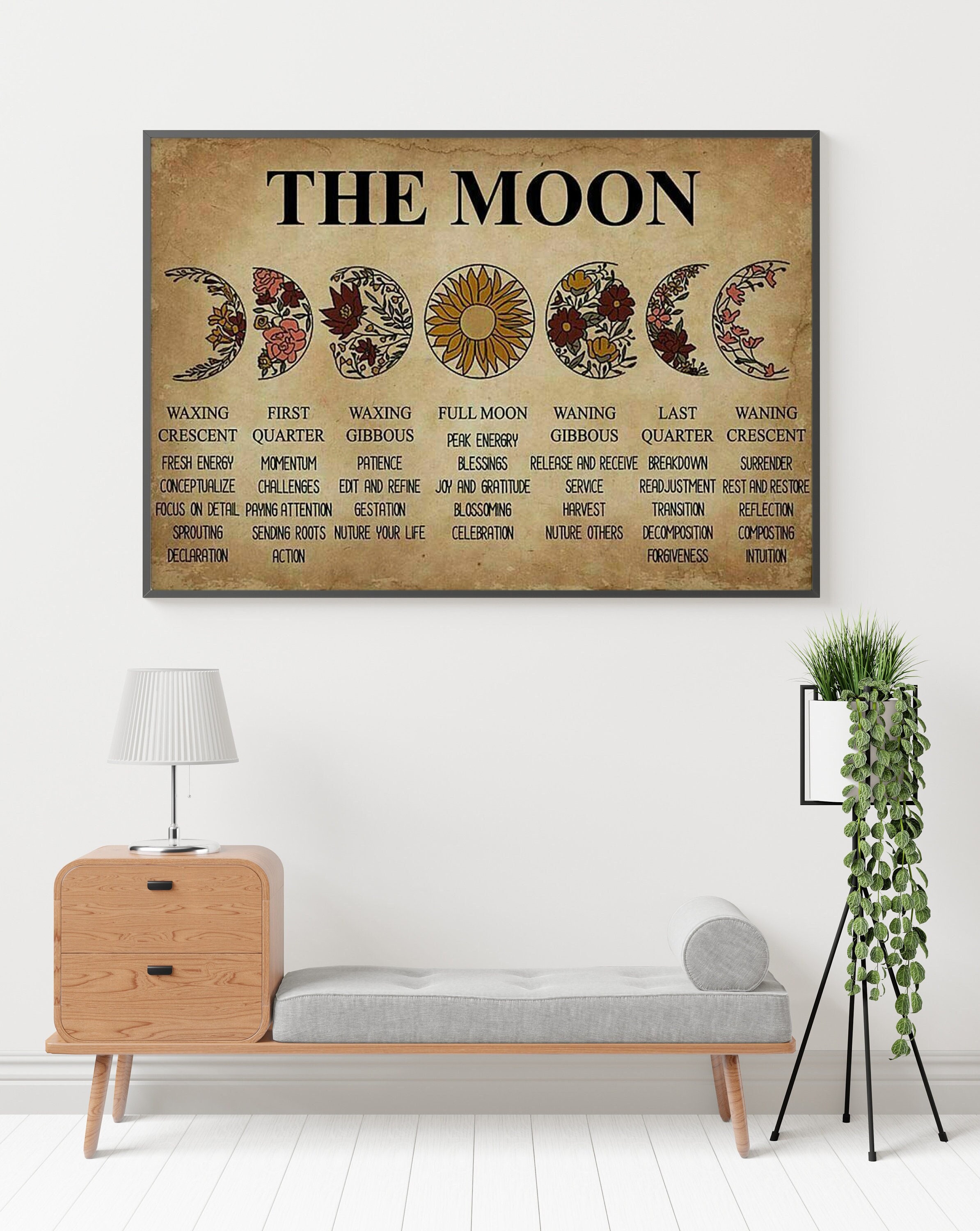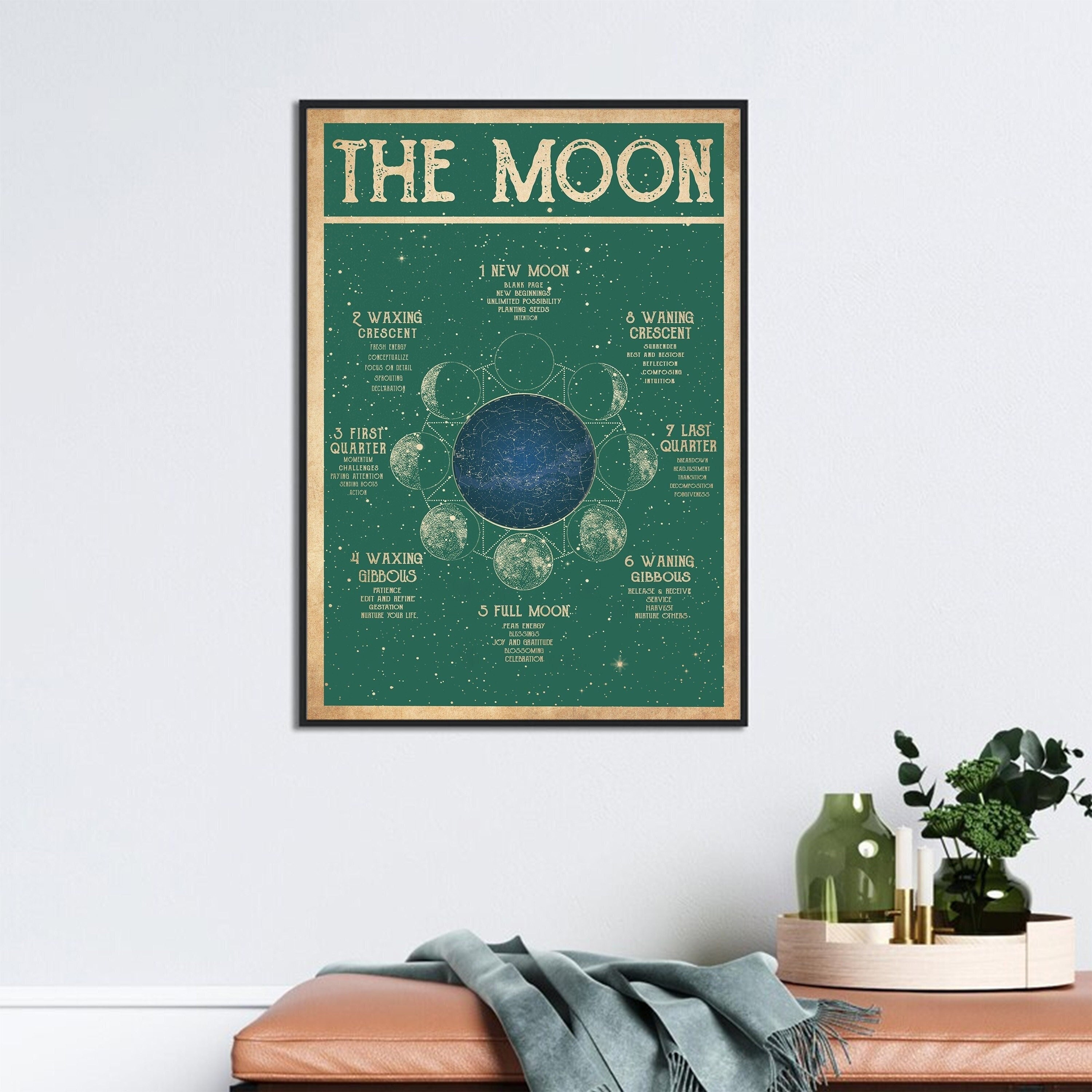 The Moon Poster, Moon Phases Meanings Printable, Vintage Moon Poste...