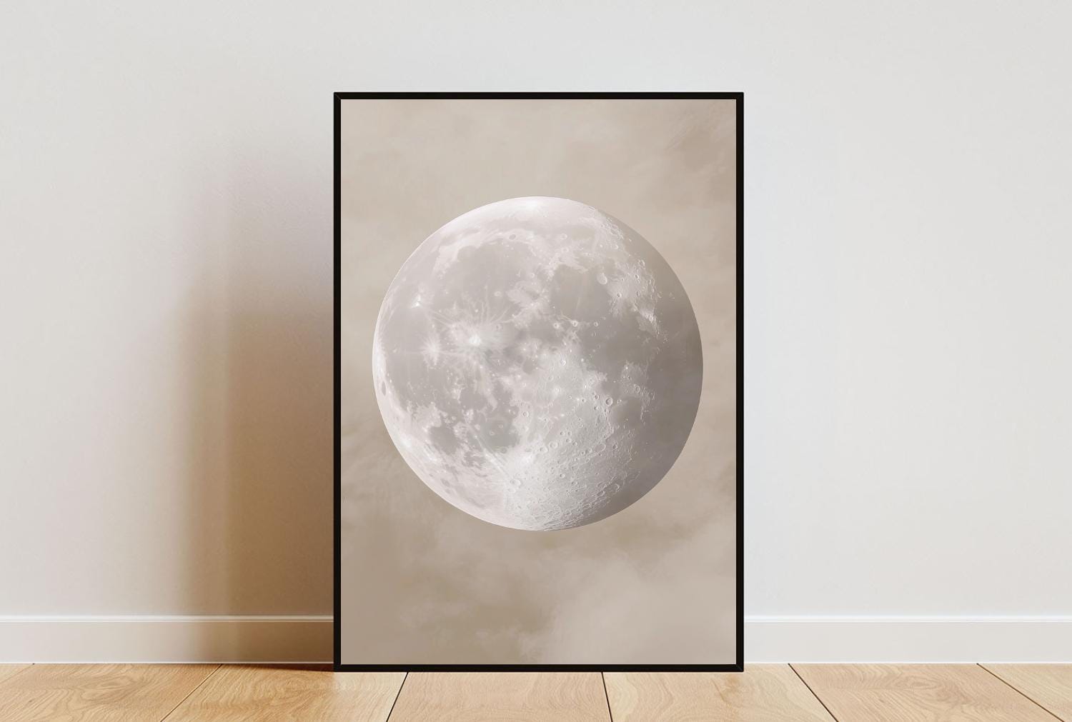 Beige Moon Poster, Moon Wall Art, Beige Poster, Beige Moon Print, M...