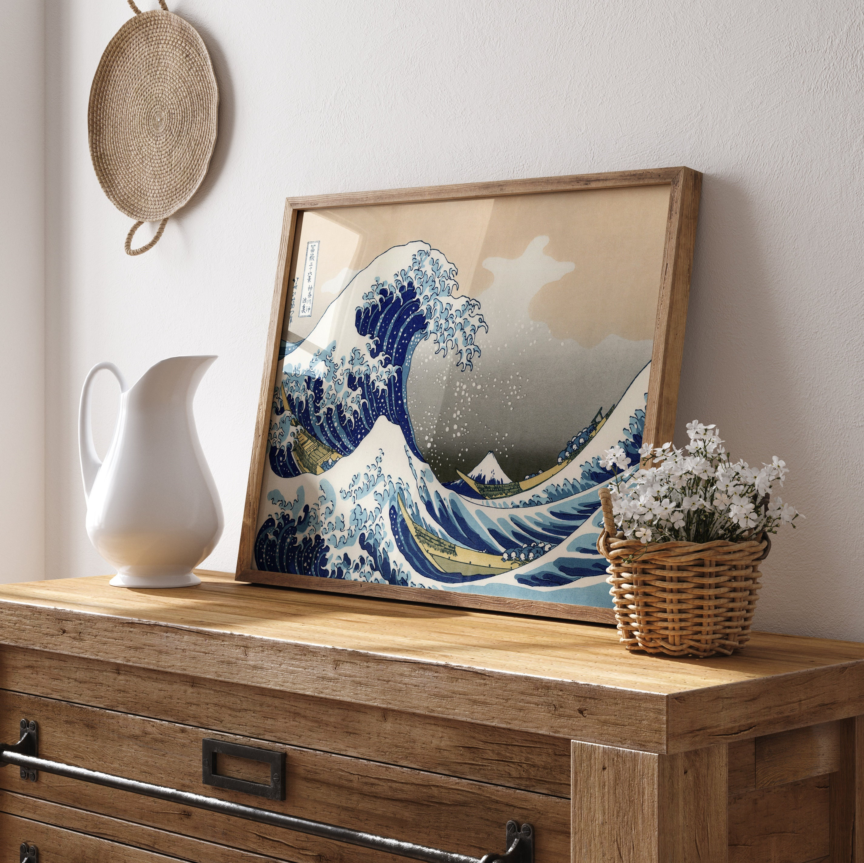"This iconic art print features The Great Wave off Kanagawa, created by Katsushika Hokusai in 1...