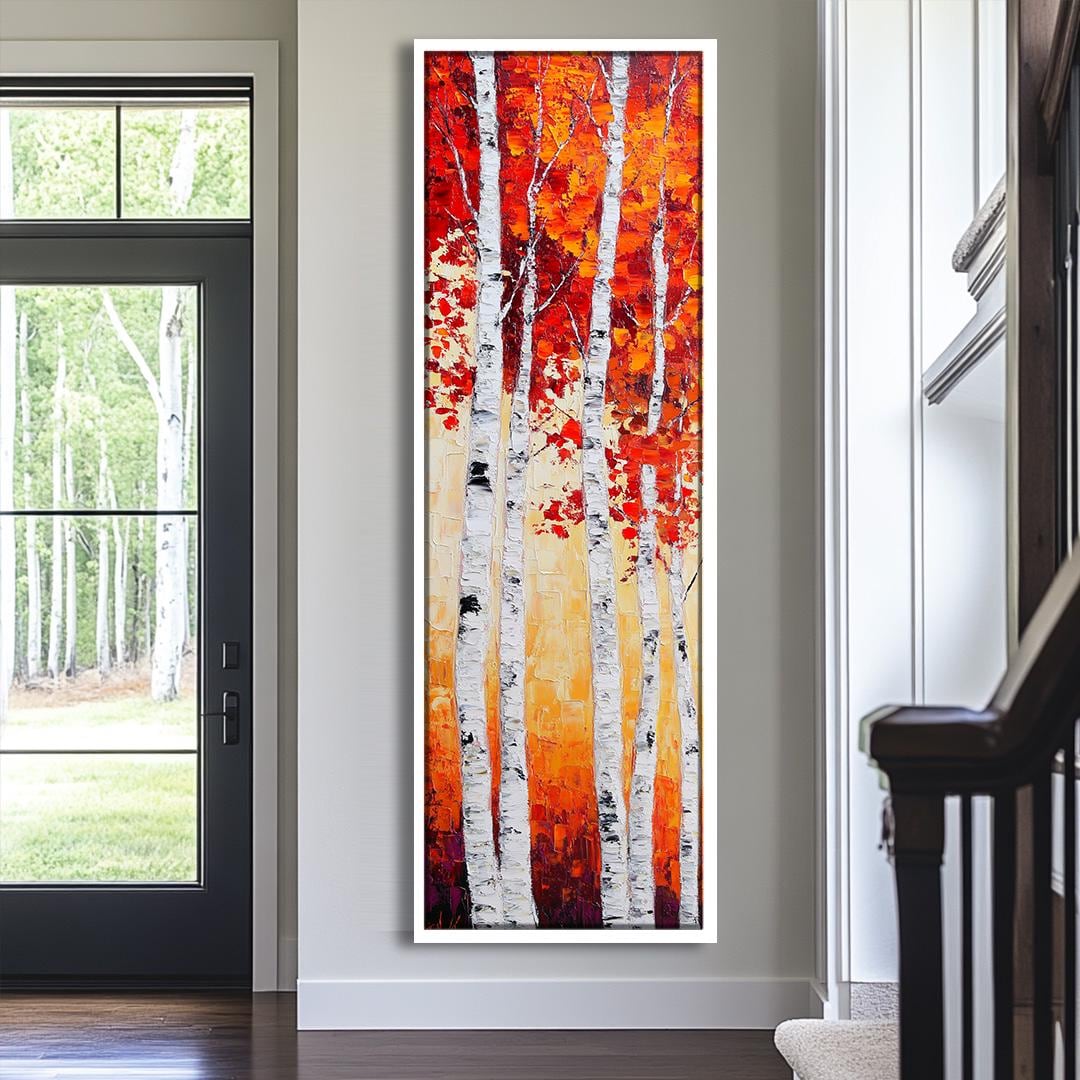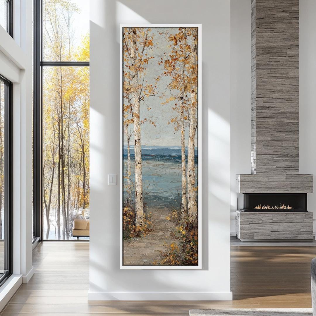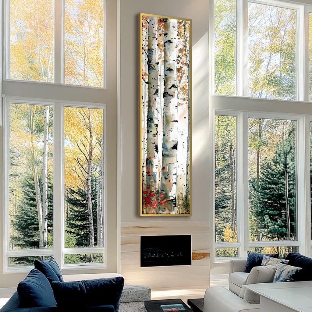 Scenic Birch Wall Art, Long Narrow Birch Tree Wall Art, Tall and Th...