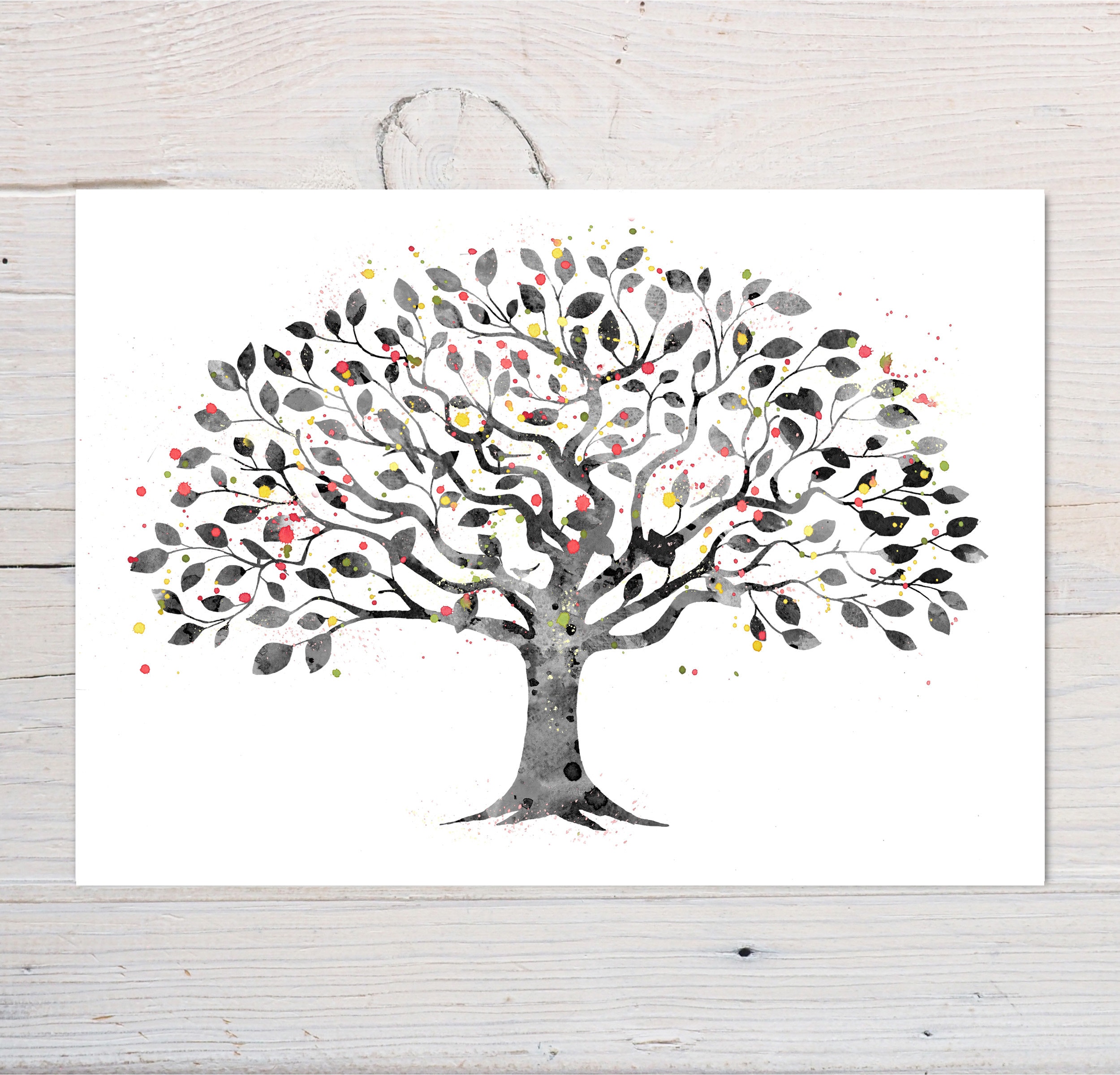 Tree art print, black and white tree print, watercolour tree print,...
