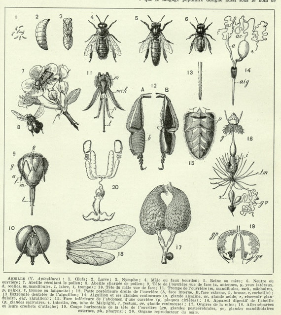 "Here is a cute little vintage honey bee print showing from a 1936 French Larousse dictionary. ...