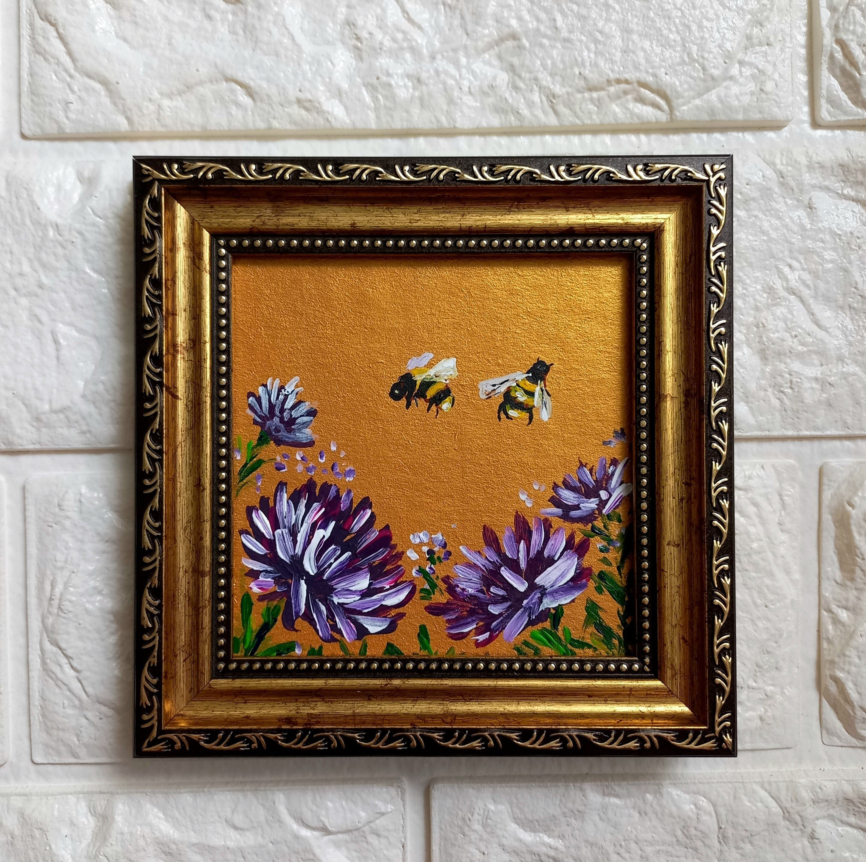 Bee Painting Bumblebee Framed Miniature Original Honeybee Small Wal...