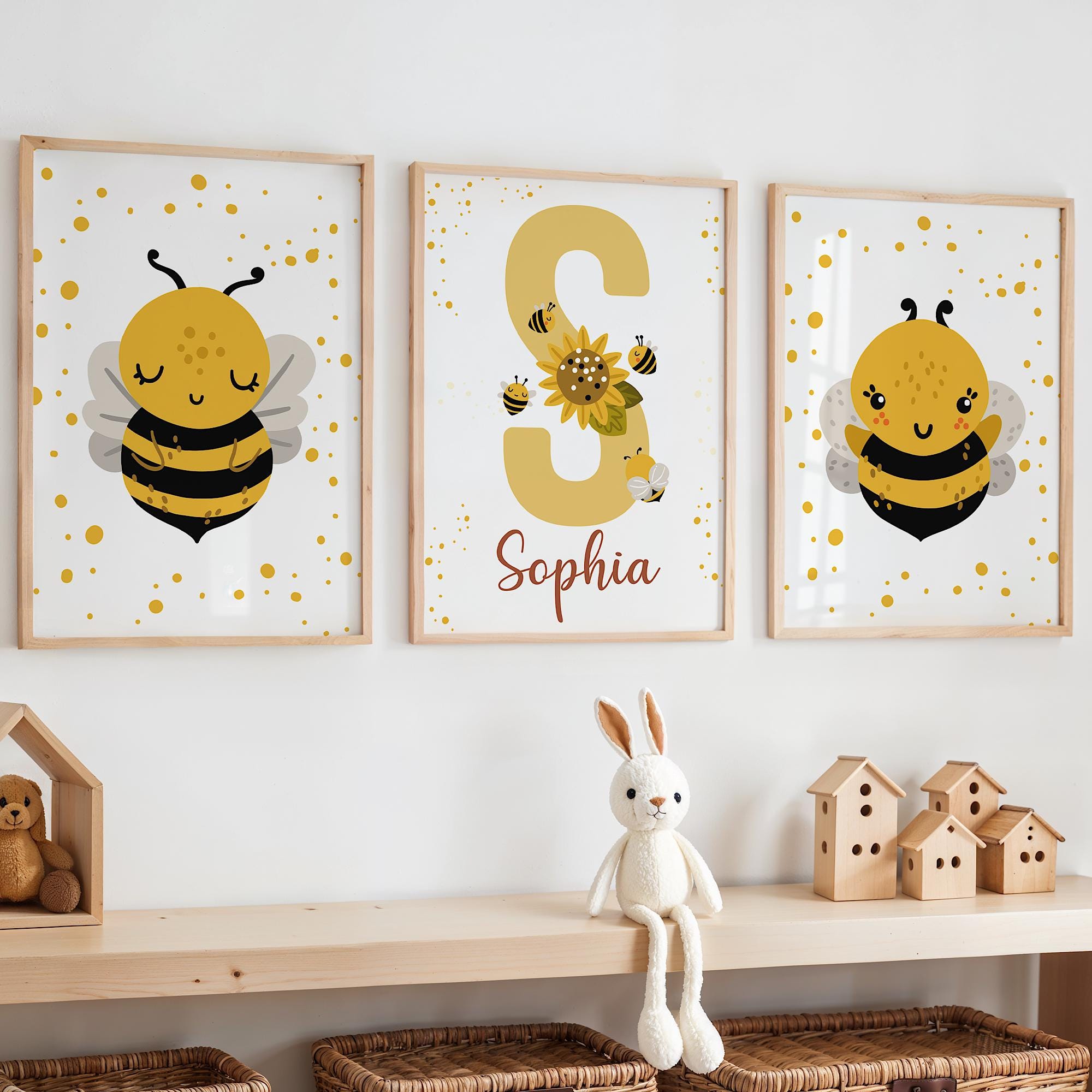 Honey Bee Nursery Prints, Honey Bee Wall Art, Yellow Bedroom Decor,...