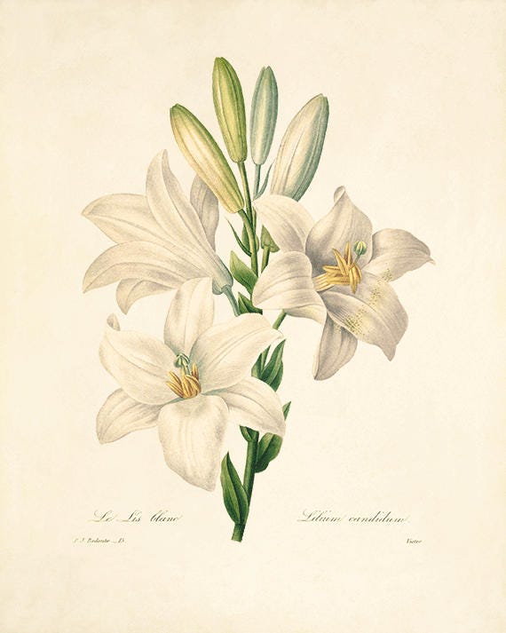 White Lily vintage flower art print Cottage wall art Victorian prin...