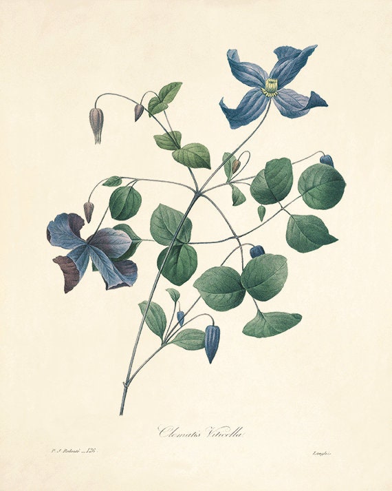 "Gorgeous blue vintage botanical illustration by Pierre-Joseph Redoute (1759-1840) who was the ...