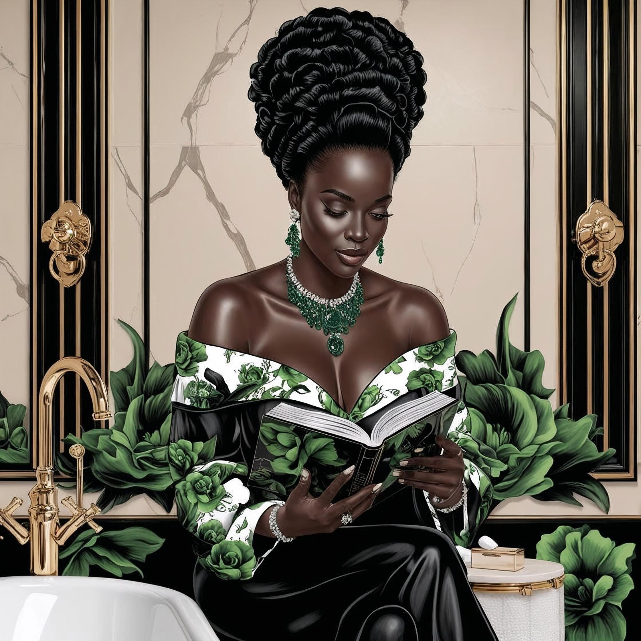 Black Woman Wall Art, Green Wall Art, Floral Wall Art, Bathroom Wal...