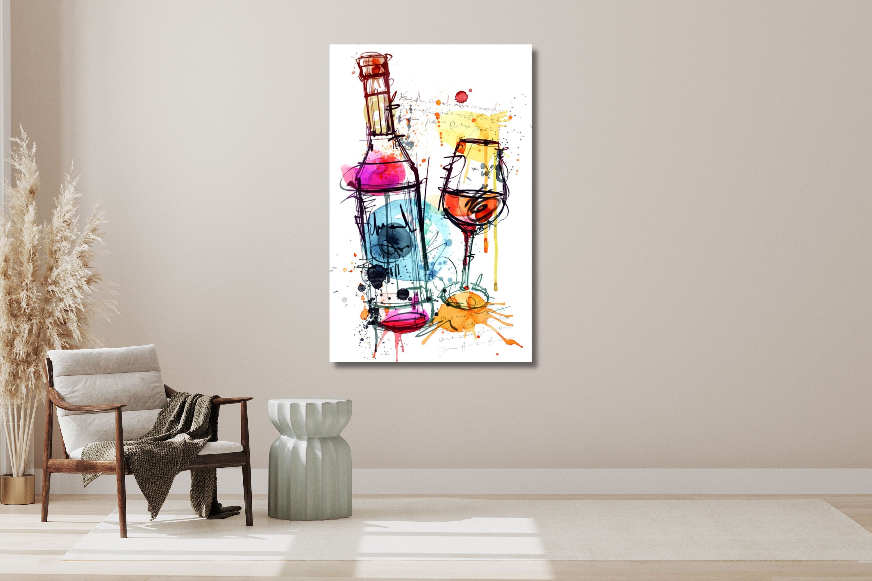 Wine Bottle & Glass Kitchen Wall Art,Wine Bottle Wall Decor, Wine Canvas Wall Art,Kitchen Wall A...