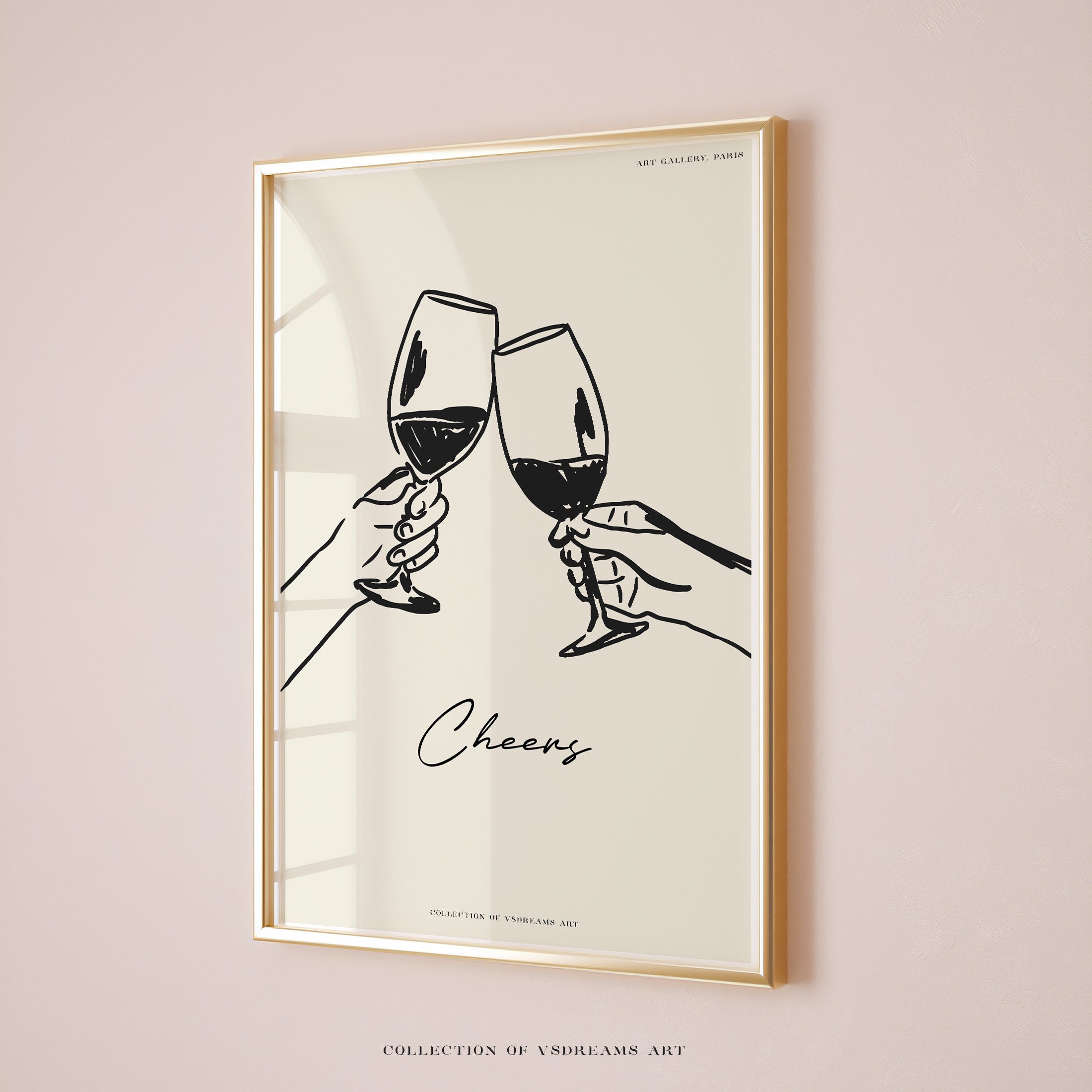 Cheers Wall Art, Wine Poster, Cheers Print, Modern Art, Wine Wall A...