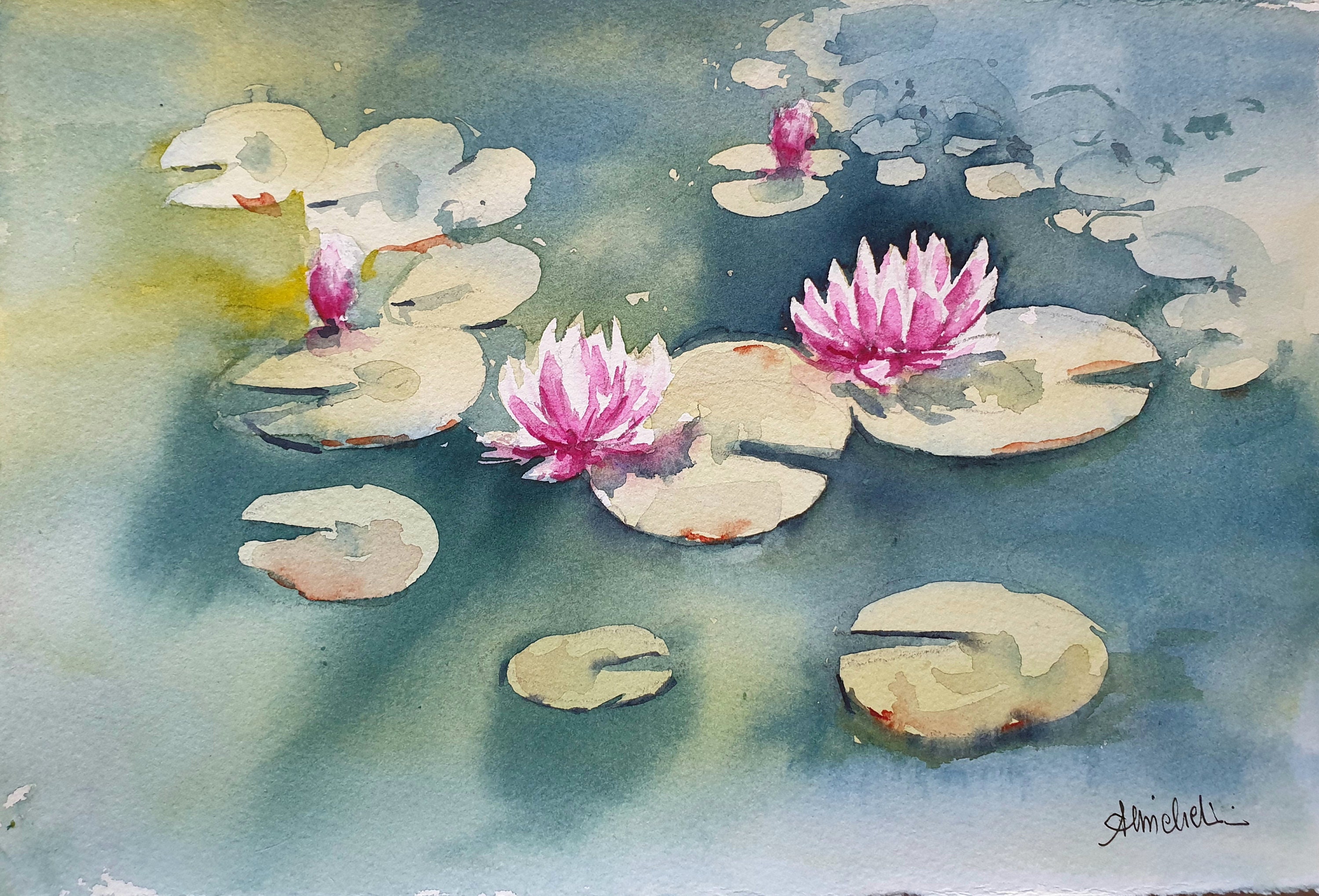 Water lilies watercolor painting, this is an original watercolor painting of waterlilies, painted on...