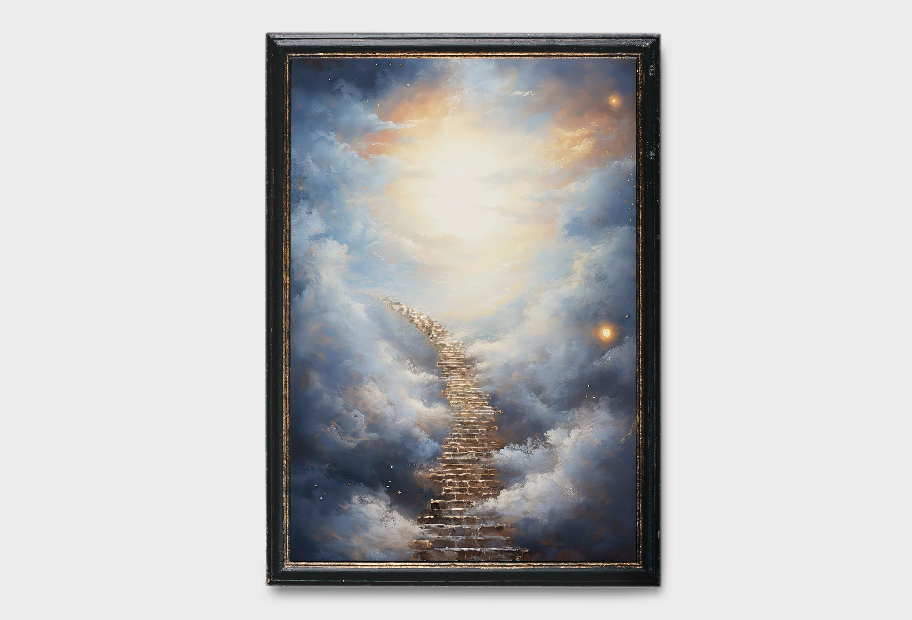 Vintage Painting Stairway to Heaven, Water Color Painting, Stairway...