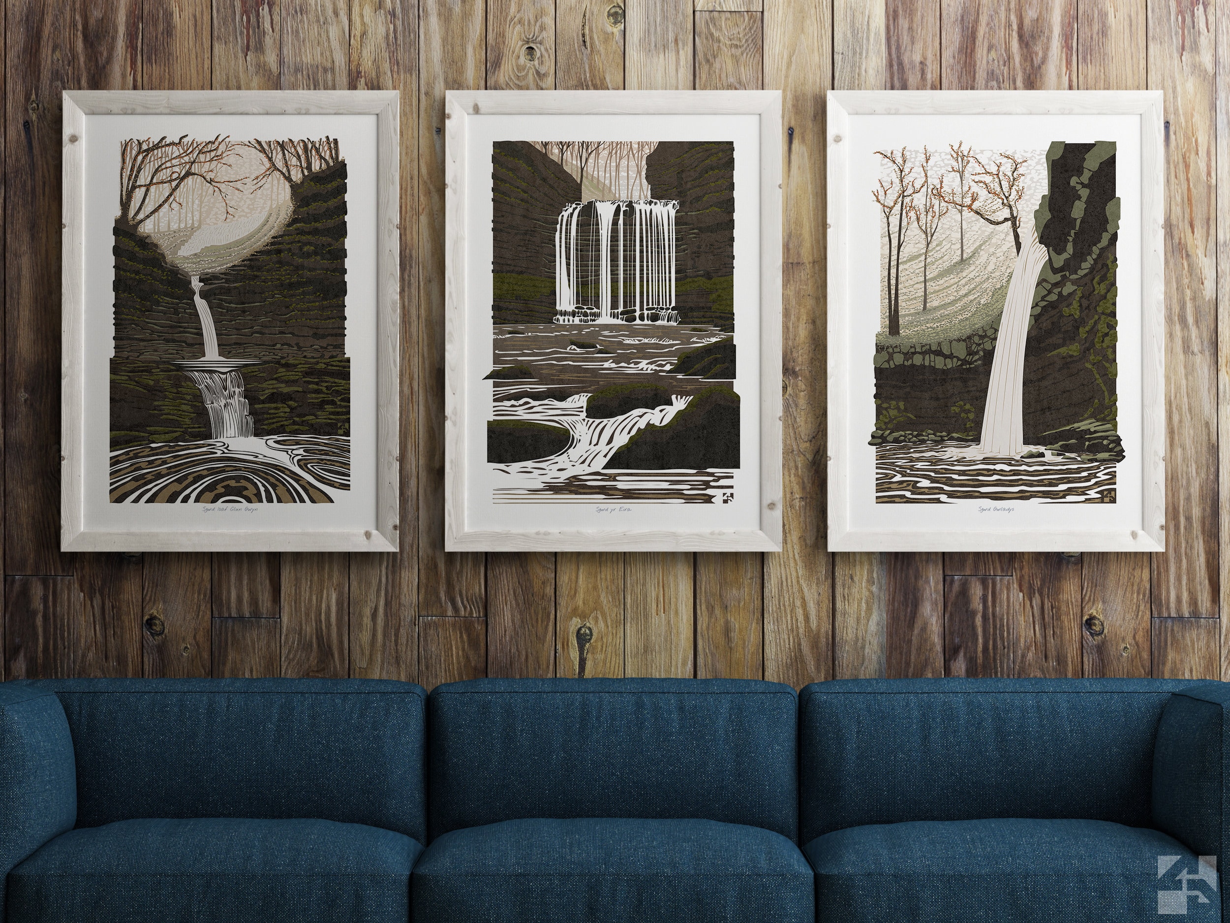 Set of 3 Brecon Beacons Waterfall Prints, Waterfall Art Prints, Wal...