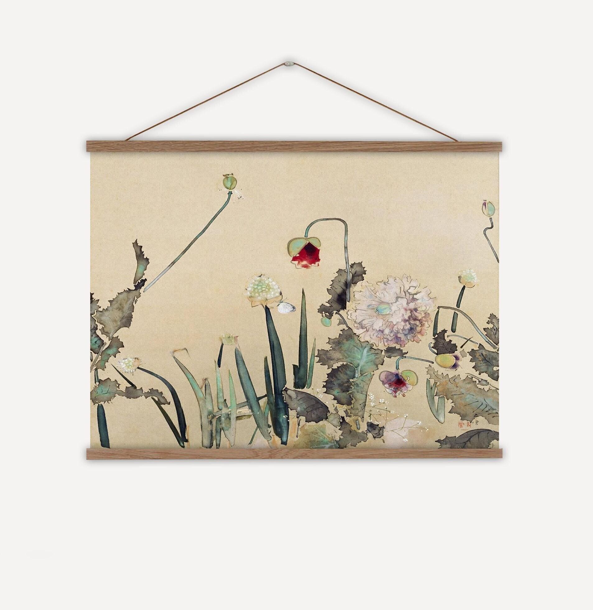 Japanese wall hanging, antique Japanese wall art, Japanese flower w...