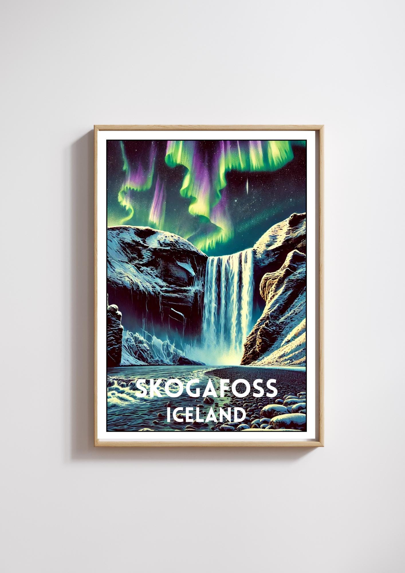 Bring the awe-inspiring beauty of Iceland into your space with this breathtaking illustrated poster ...