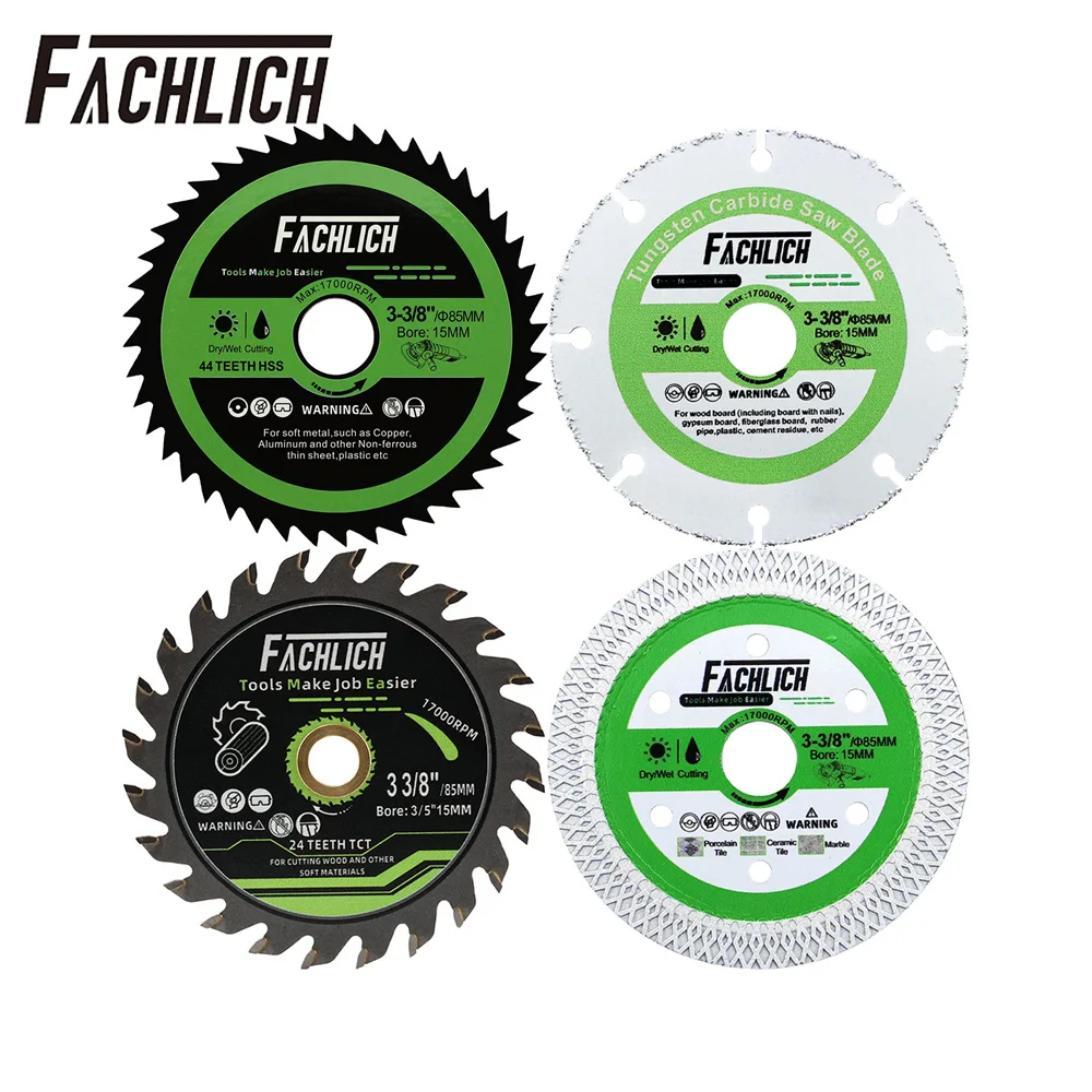 FACHLICH 4pcs Set Diamond Cutting Disc Circualr Saw Blade 85mm Tile Porcelain Steel Aluminum Marble ...