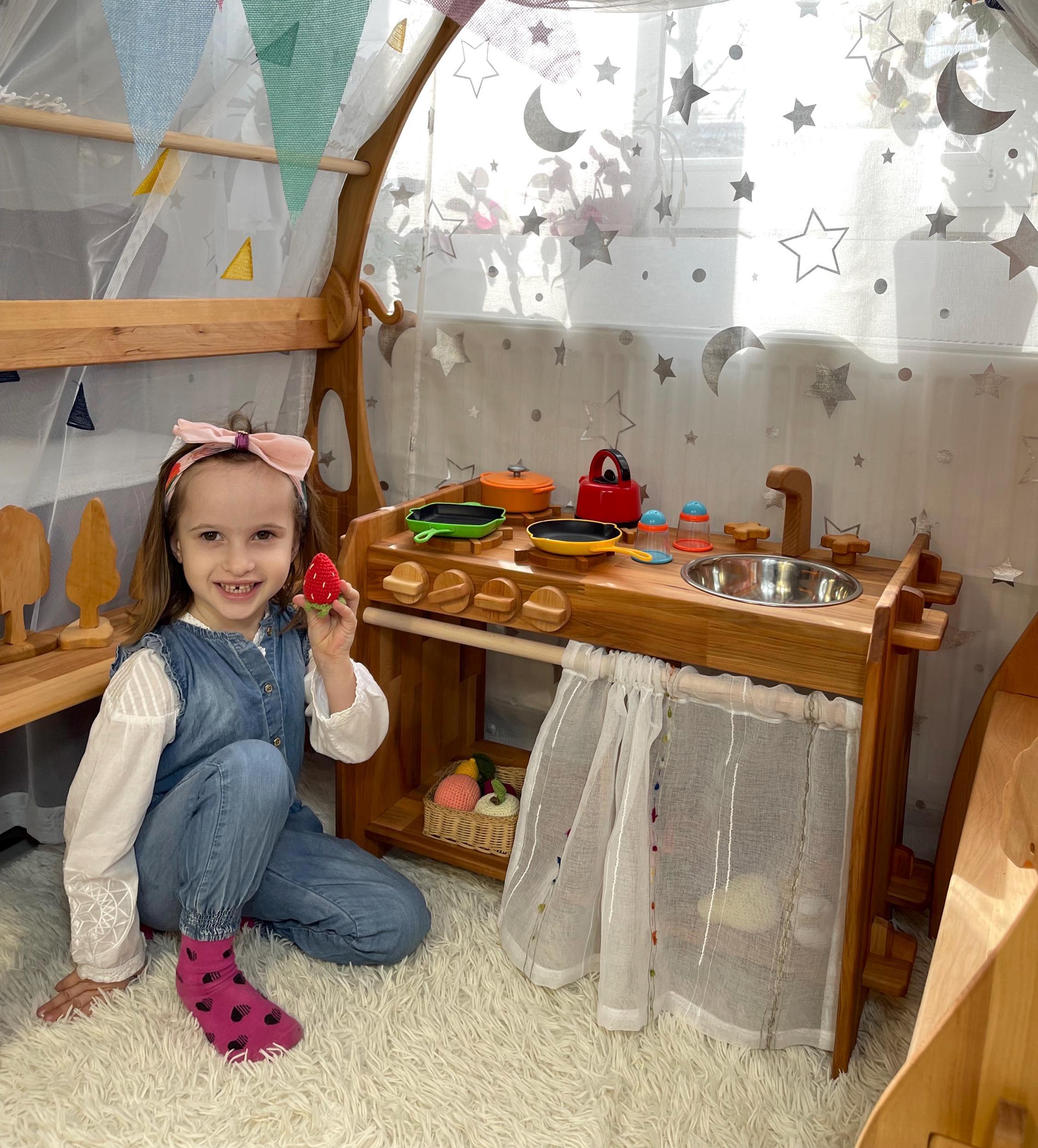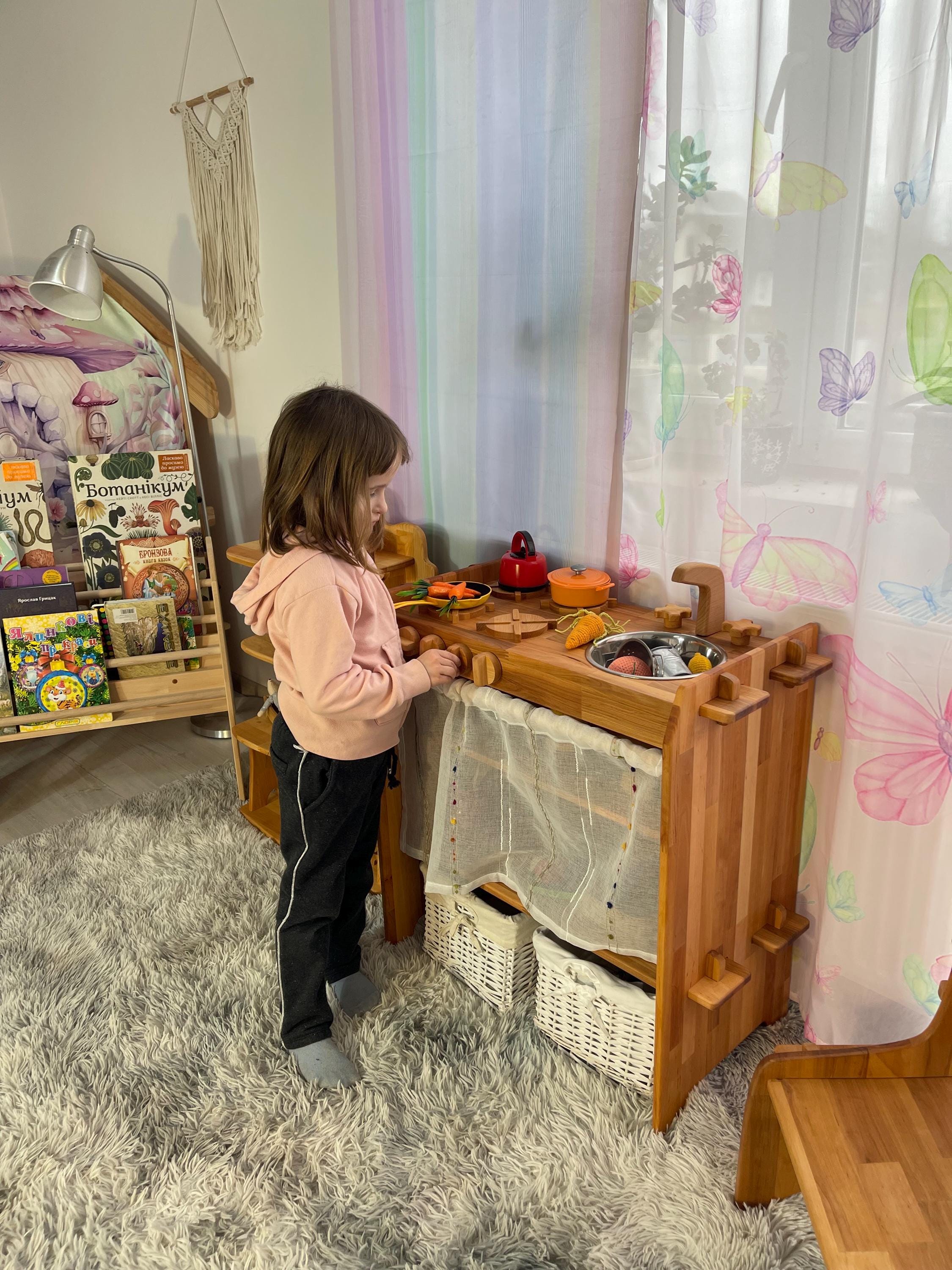 Wooden Toy kitchen Gift for kid Stove and Sink toy Kids Kitchen Wal...