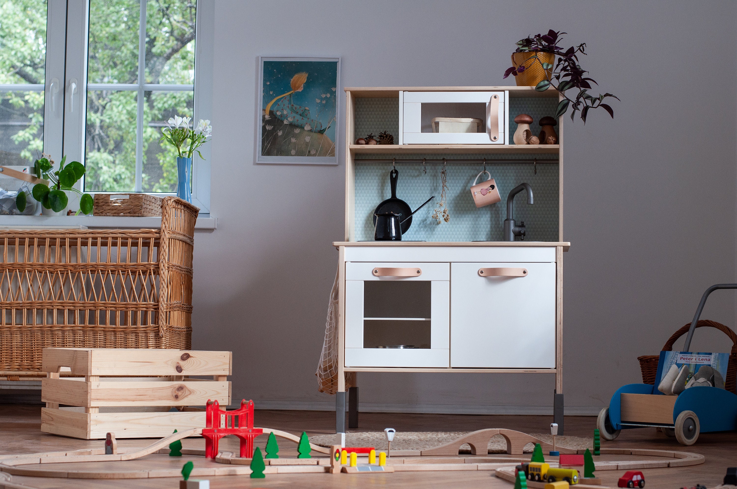 ikea play kitchen hack, ikea play kitchen leather handles, ikea pla...