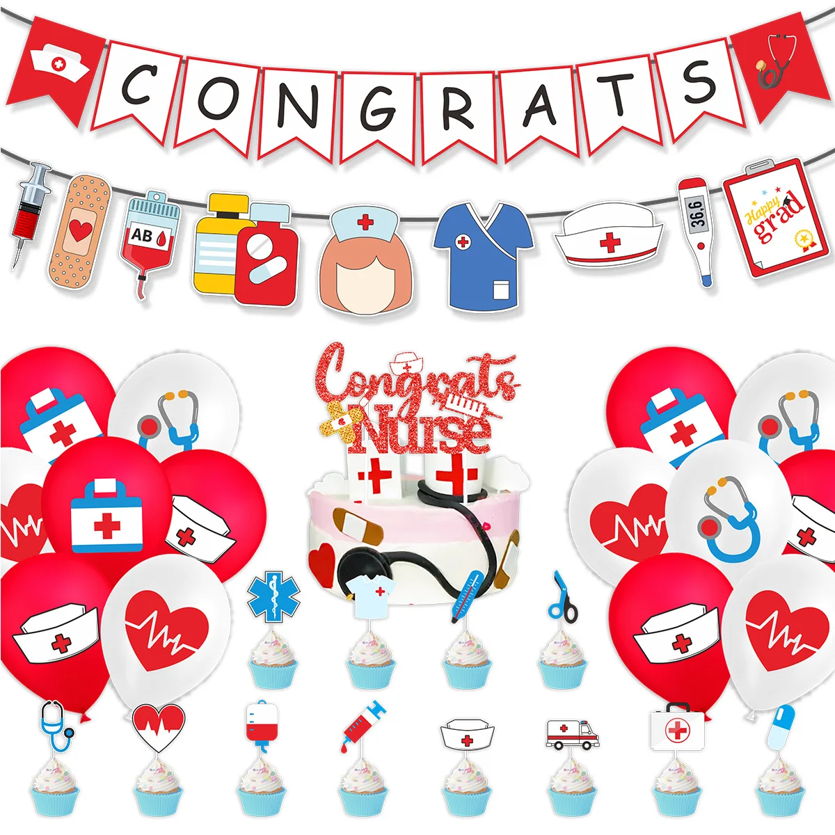 Doctor Nurse Graduation Theme CONGRATS Banners Cupcake Topper Balloon for Happy Nurse's Day Graduate...
