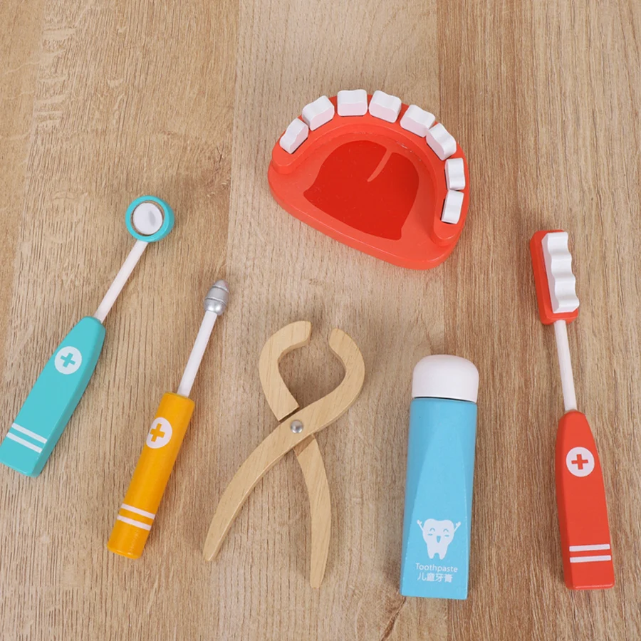 Children's Wooden Doctor Set Pretend Play Medical Kit Simulation Nu...