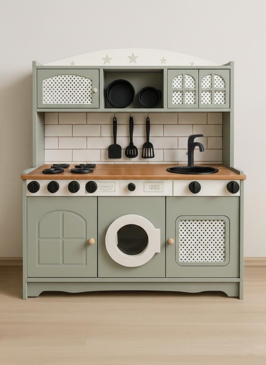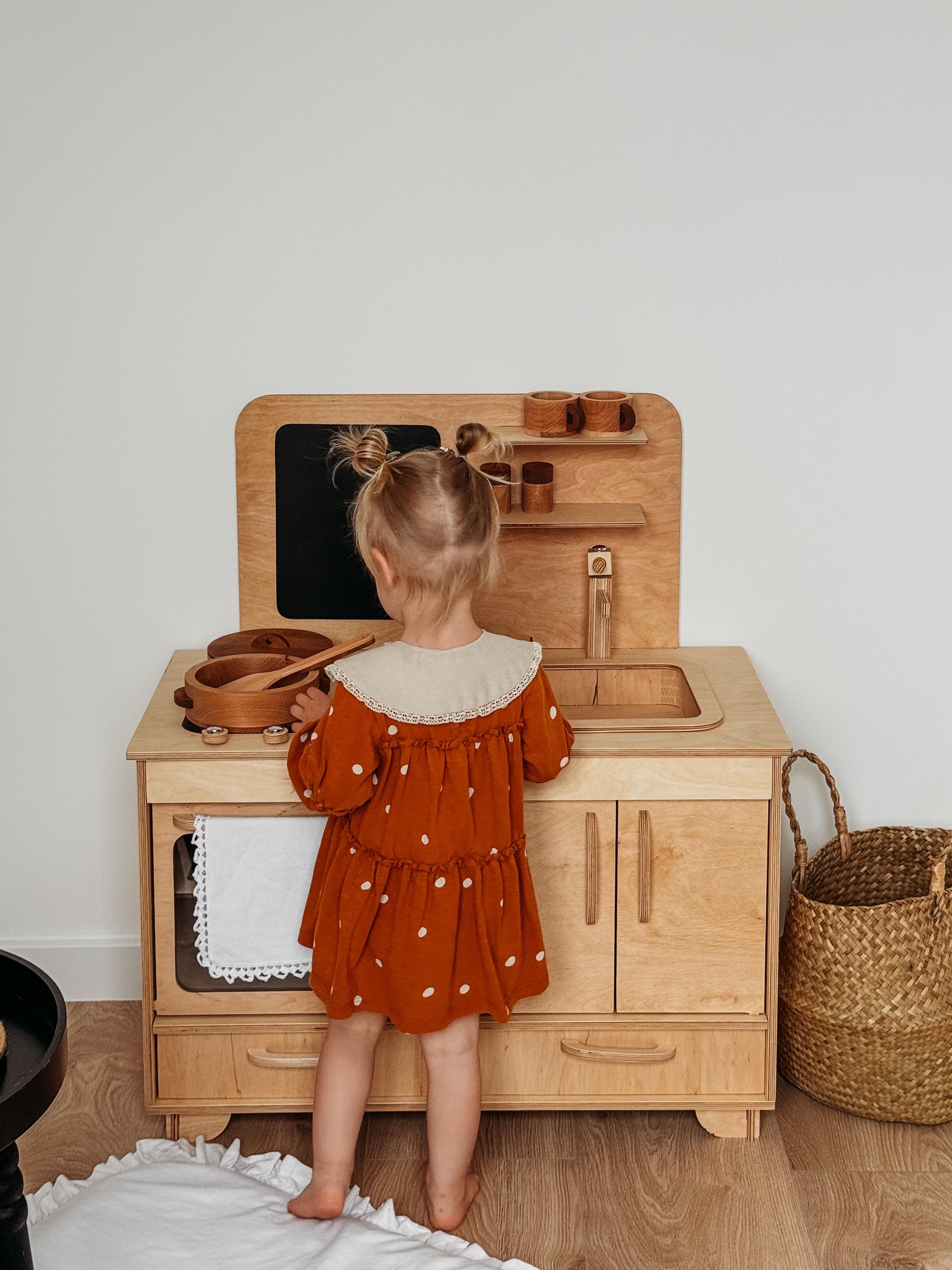 Pretend Play Kitchen, Wood Kitchen Play, Montessori Furniture for K...