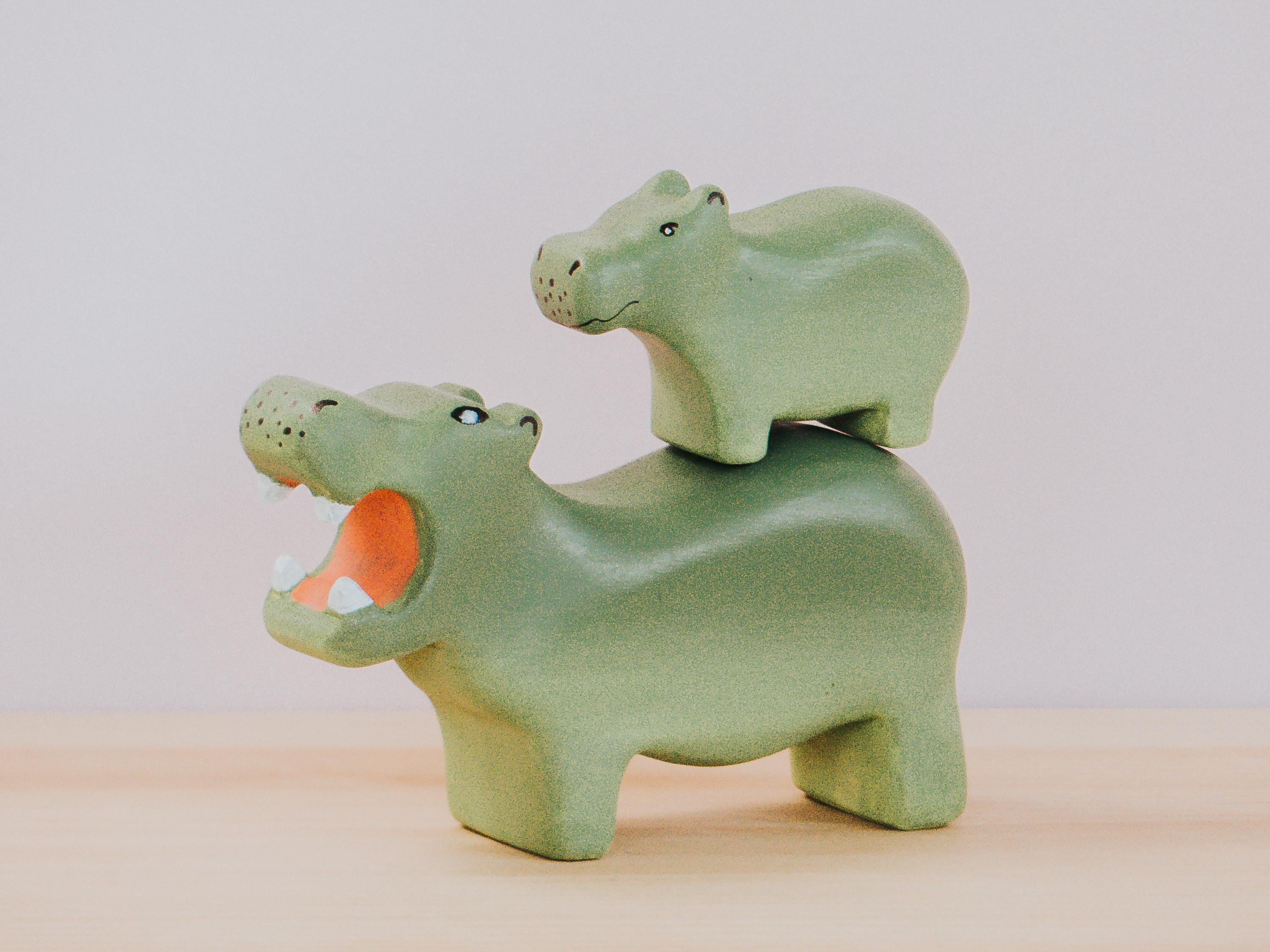 Wooden Hippo Toy, Jungle Animal Wooden Toy, Handcrafted Wooden Hipp...