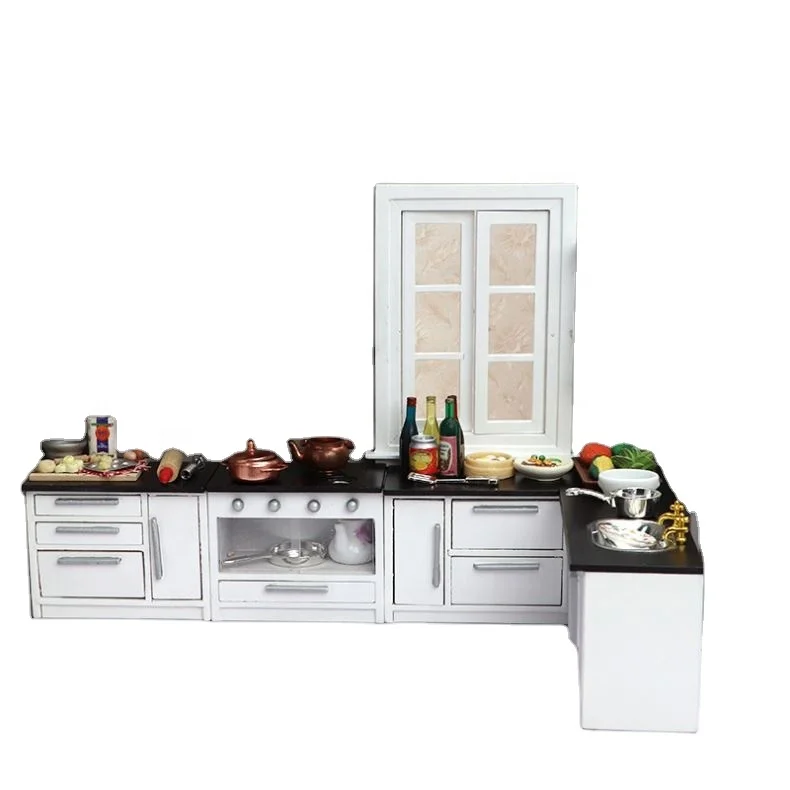 Doll House 1/12 Modern Wooden Kitchen Stove Sink Cabinet Dollhouse ...
