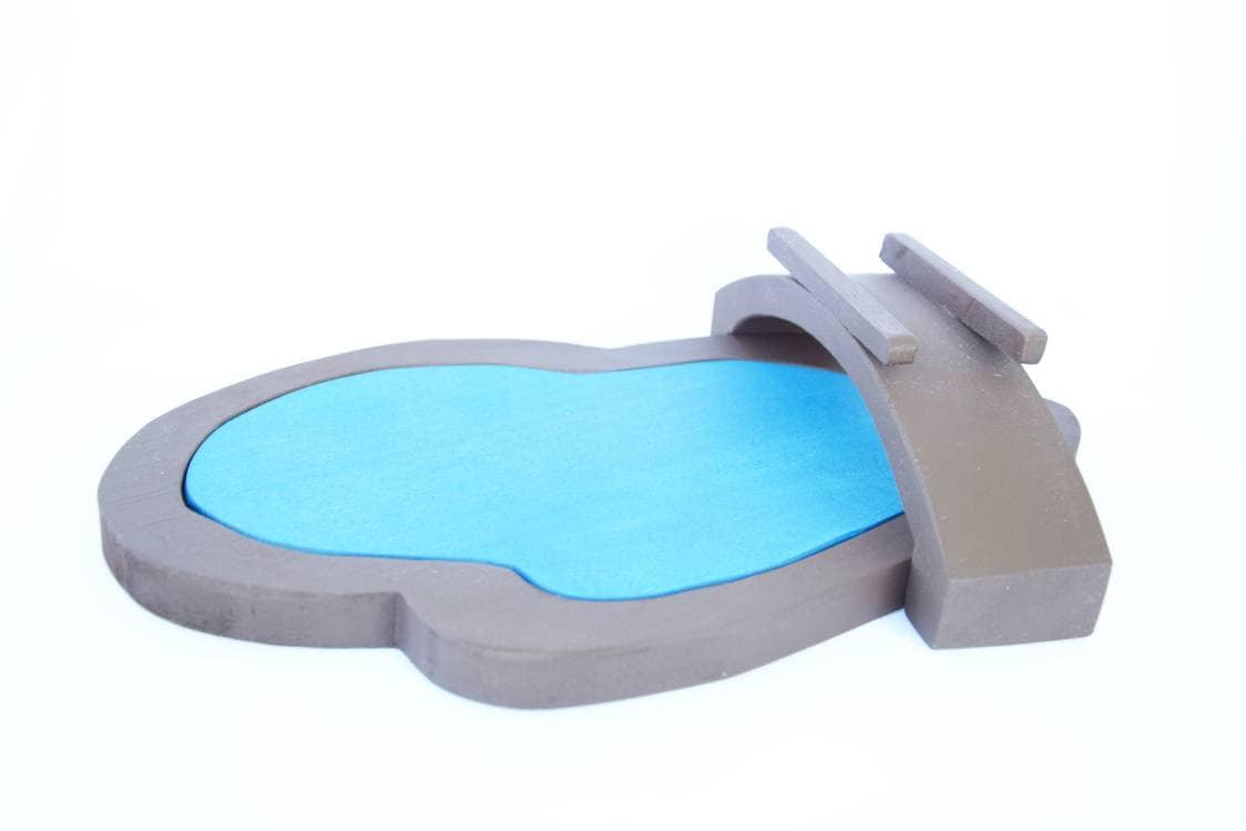 Pond with bridge, lake toy, wooden toy bridge, wooden lake toy, pre...
