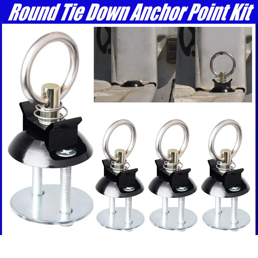 4PCS L-Track Single Stud Fitting with Round Ring Black Cargo Tie Do...