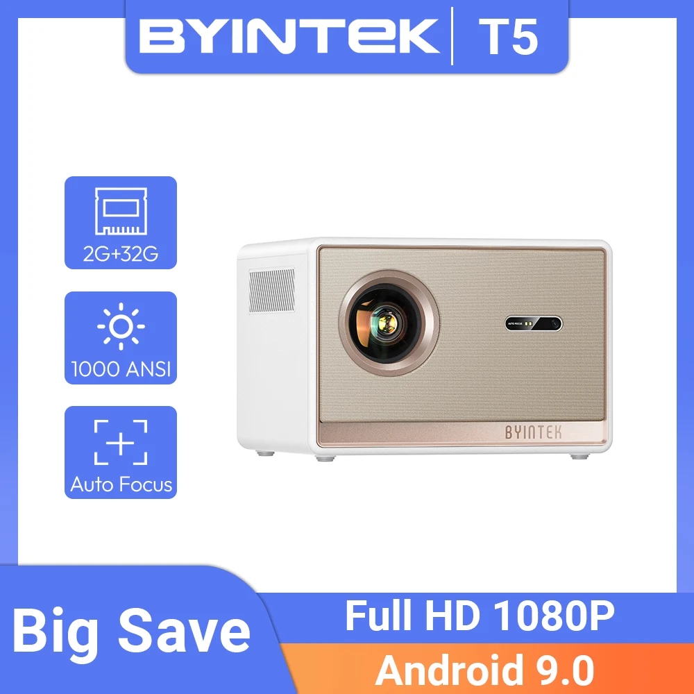BYINTEK T5 Max Full HD 1080P Projector 4K 1000ANSI Android WiFi 6 Auto Focus ProfessionalBass Home T...