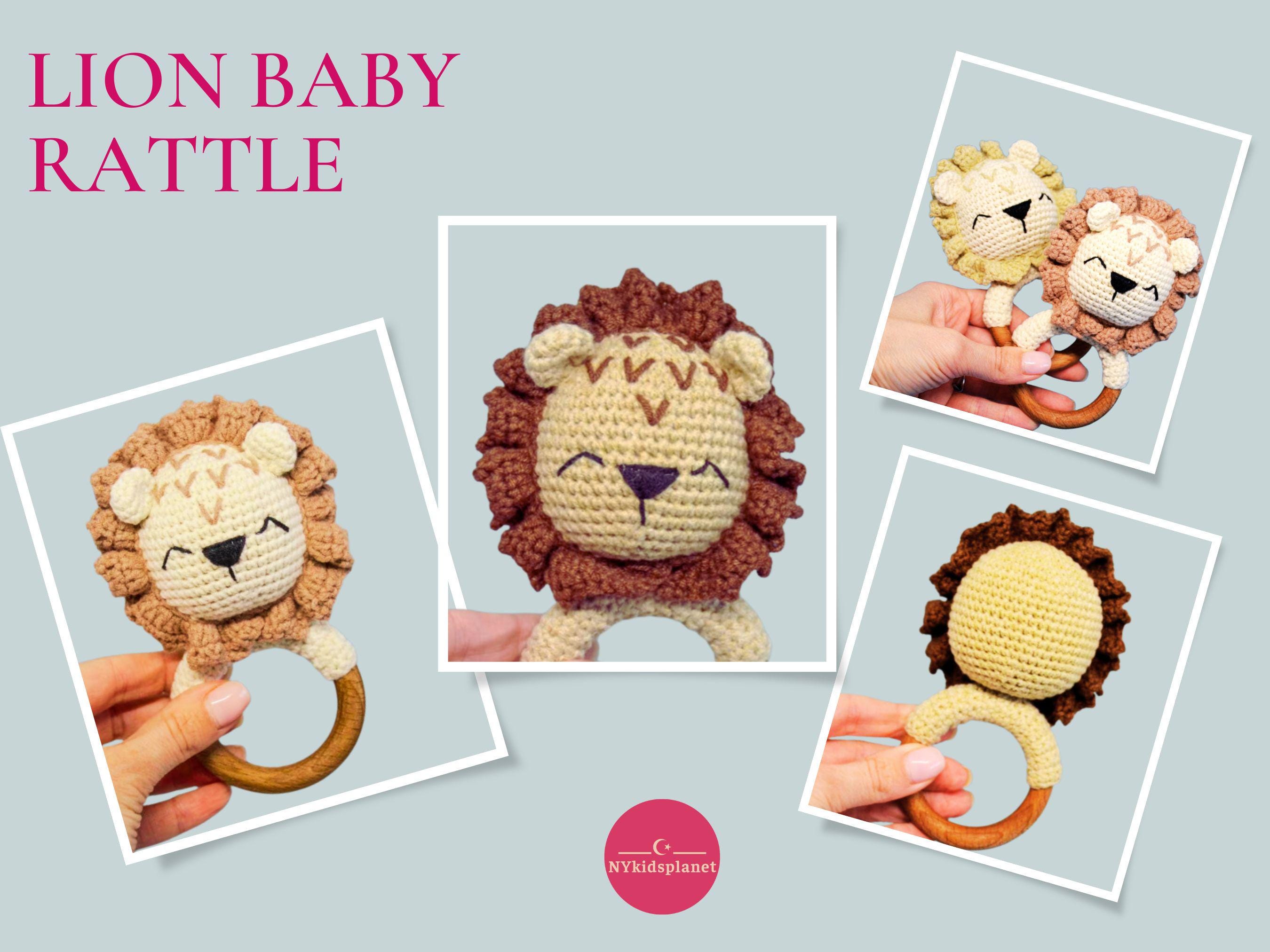 Crochet baby rattle pattern, newborn baby rattle, Lion baby rattle-...