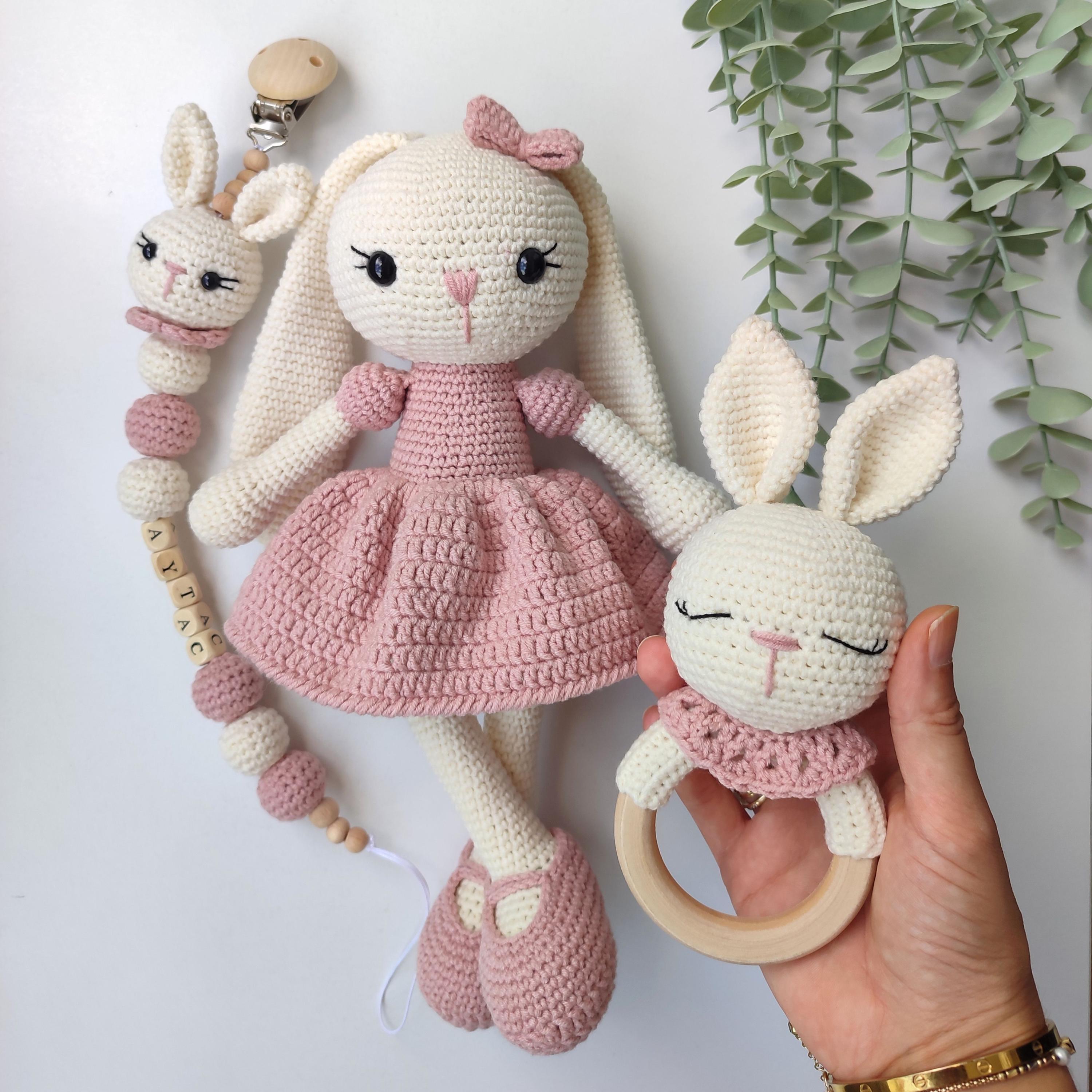 Crochet bunny pattern Baby rattle rabbit plush pattern Baby teether...