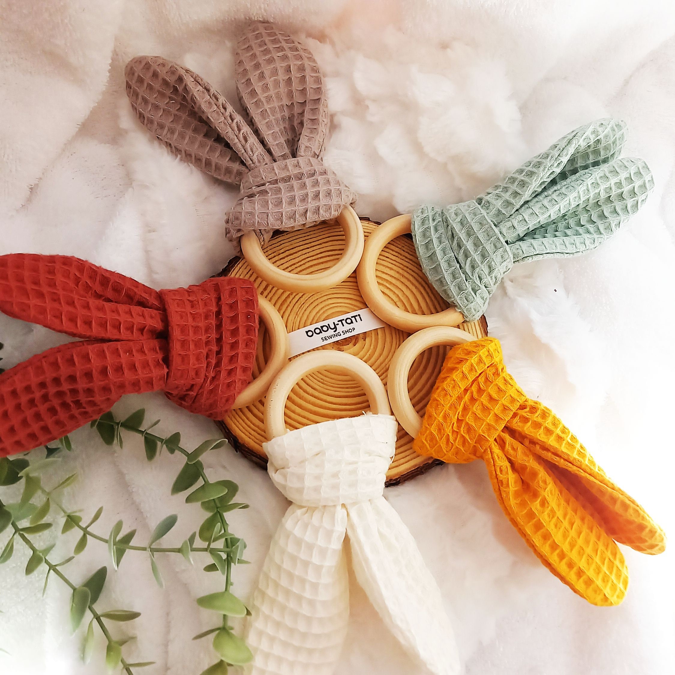 Custom baby teething ring crinkle toy, bunny ear teething toy for b...