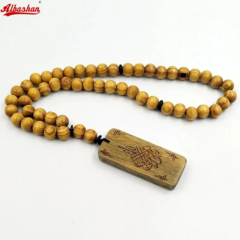 Natural beech Wood Tasbih 33 45 51 66 99 Man's Misbaha Prayer Beads With Arabic Sandalwood Tassel Pe...