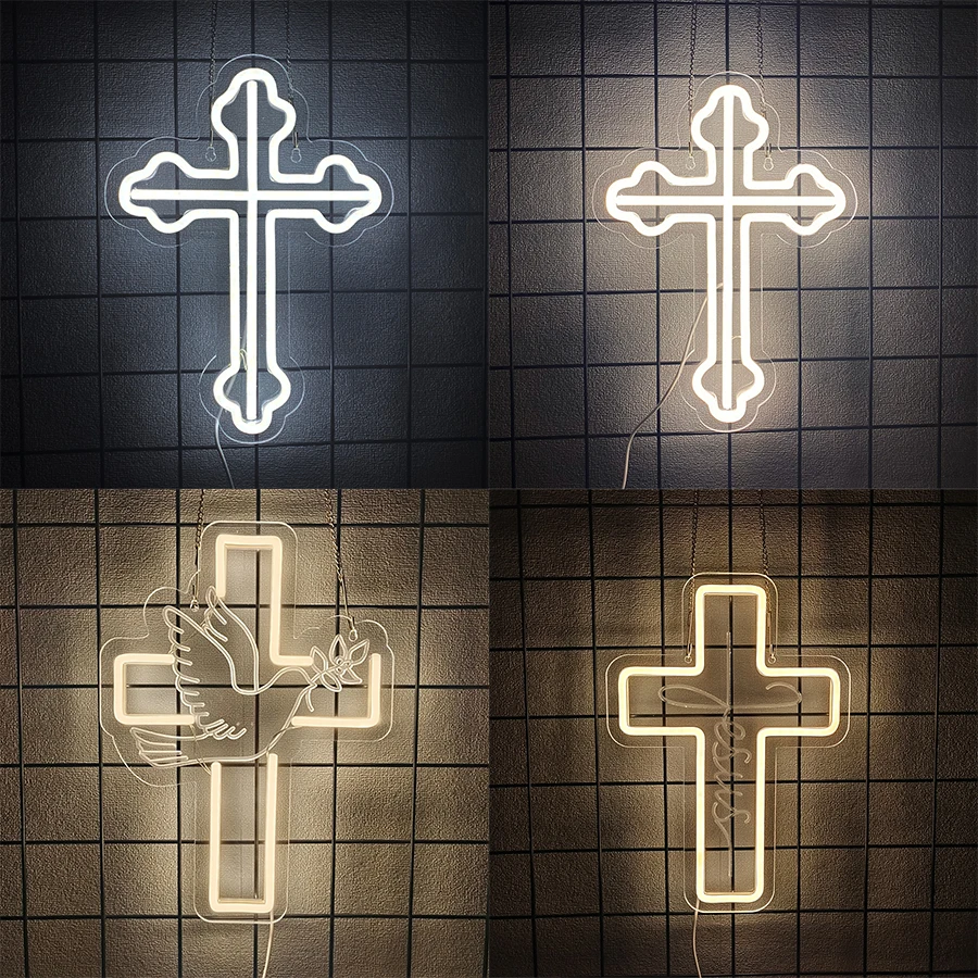 Cross Neon Sign Adjust Bright LED Easter Cross Neon Light Dove of Peace Night Light Party Wedding Ho...