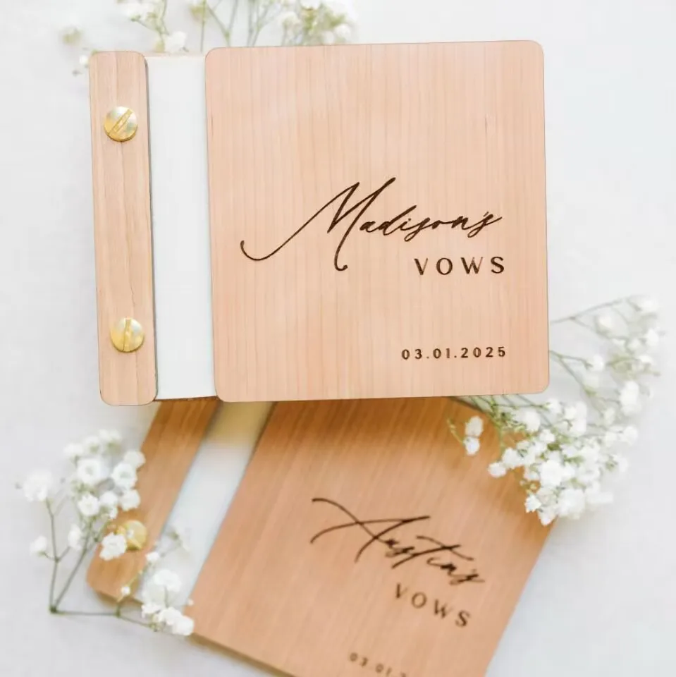 Personalized Vow Books, Custom Wooden Wedding Vow books set of 2, H...