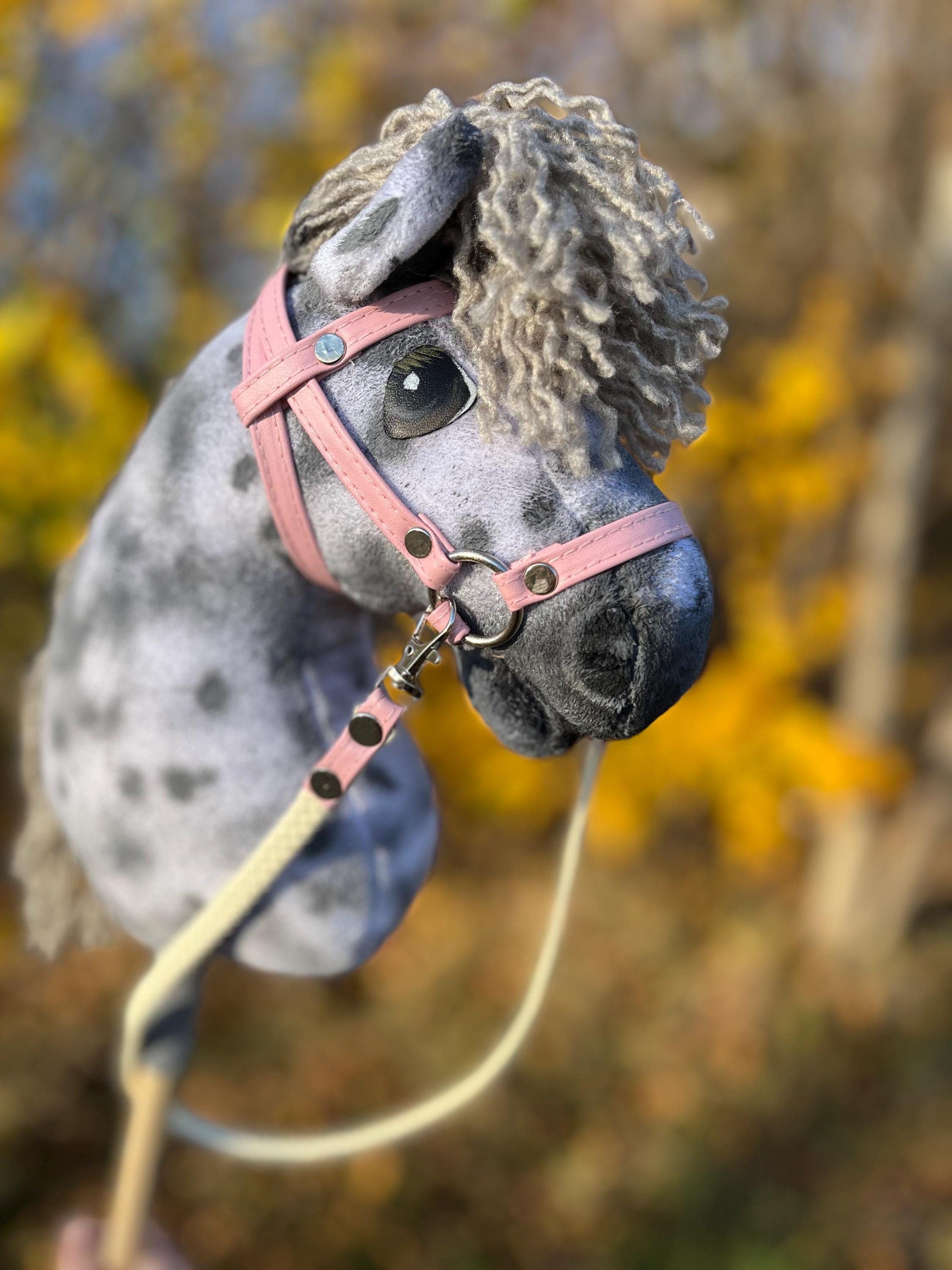 Hobby Horse Dun + Stick + Black Halter + Reins + Tether 100% Handma...
