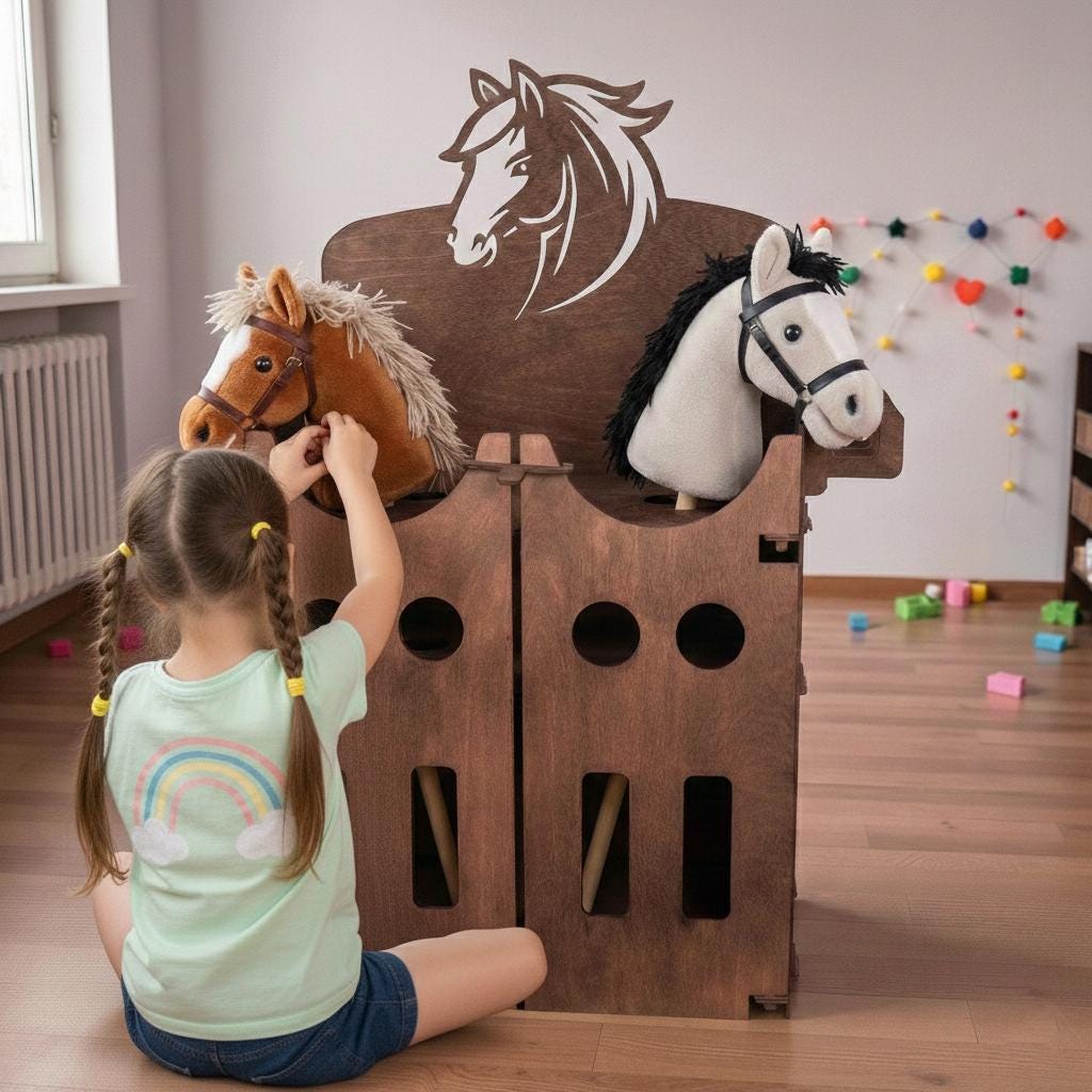Wooden Stable for 2 Hobby Horses, Hobby Horse Stand & Stick Hor...