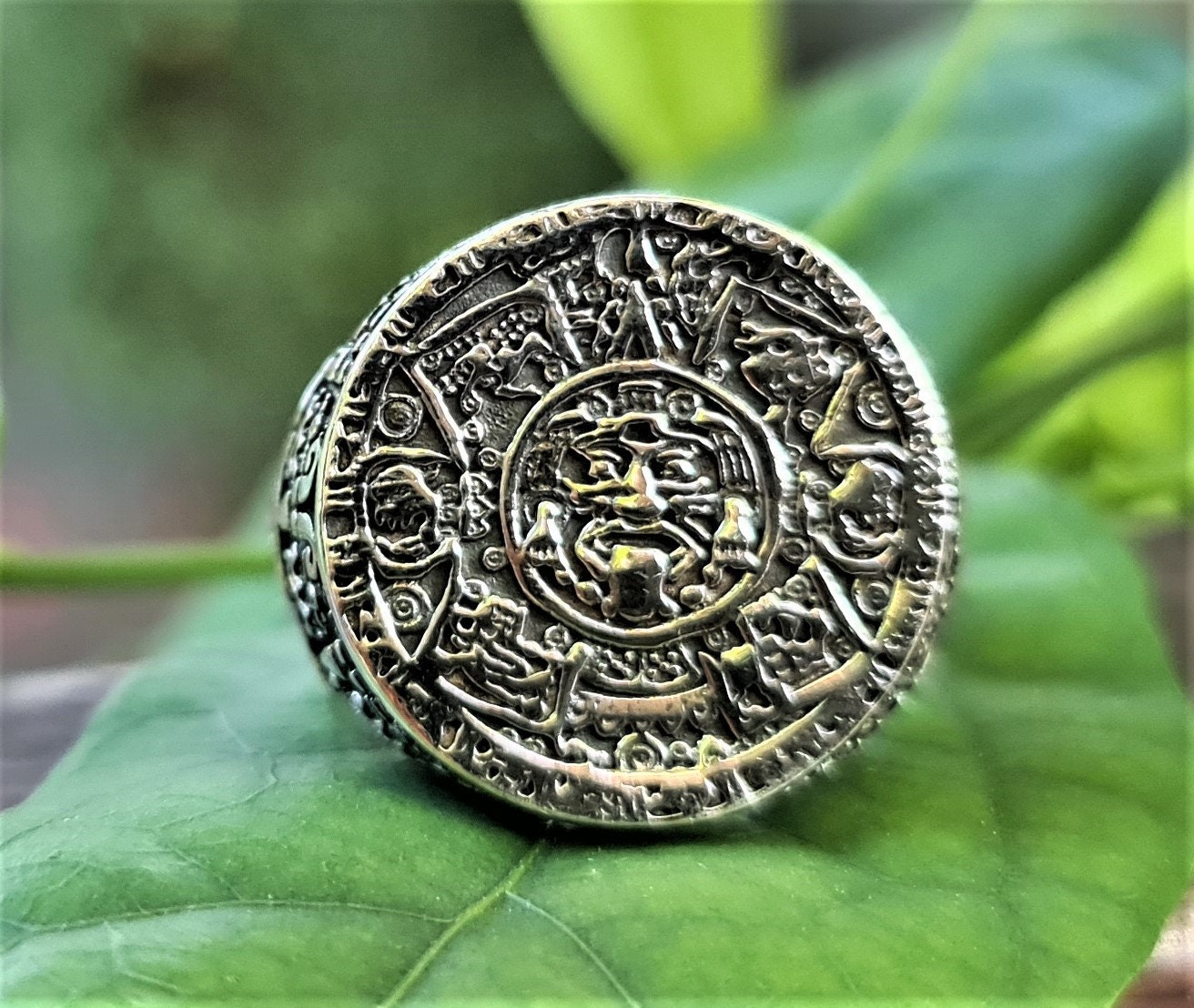 sterling silver mayan ring - mayan calendar ring - maya calendar pe...