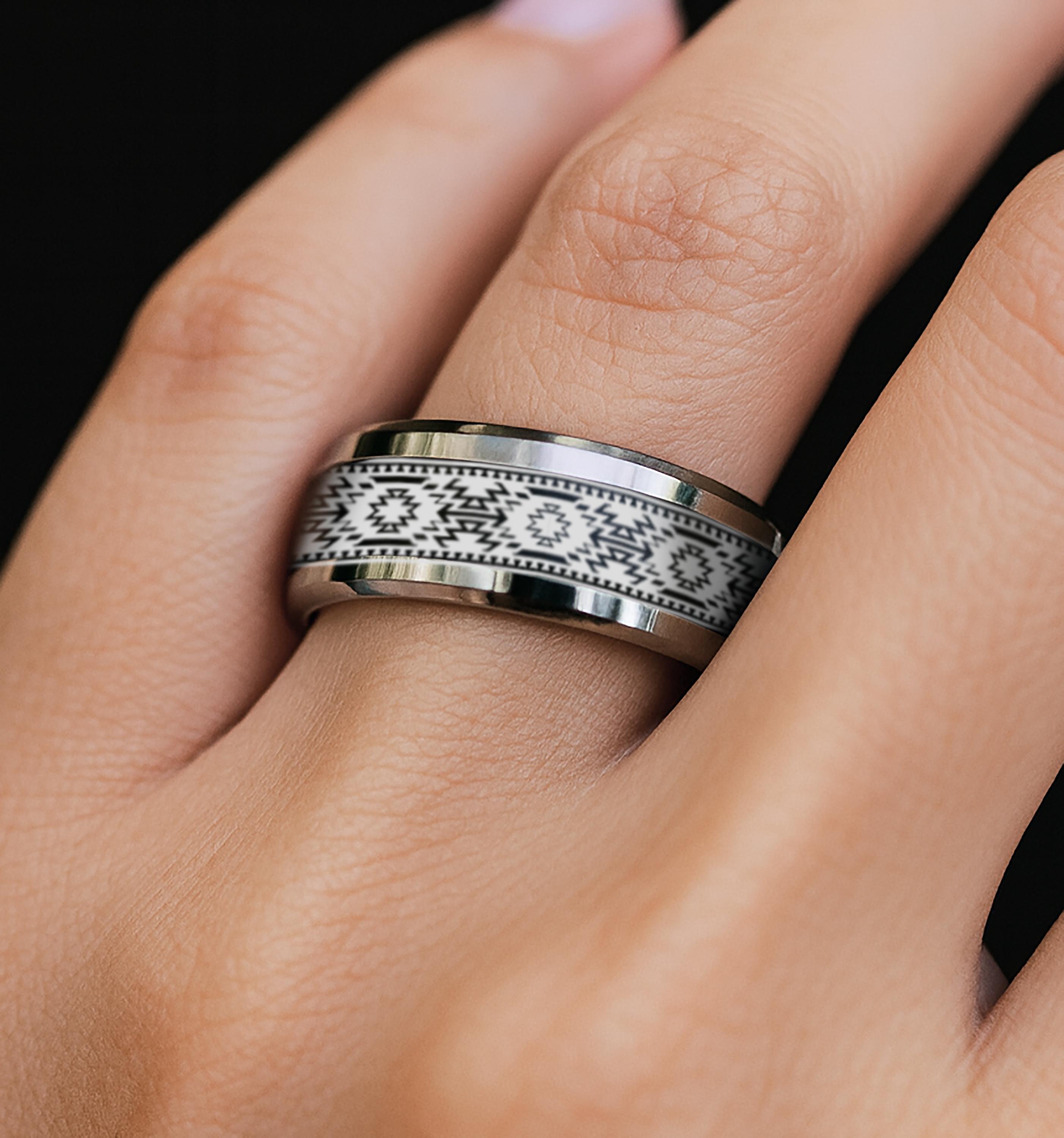 American Indian Spinner Ring, Native American Pattern Ring, Native ...