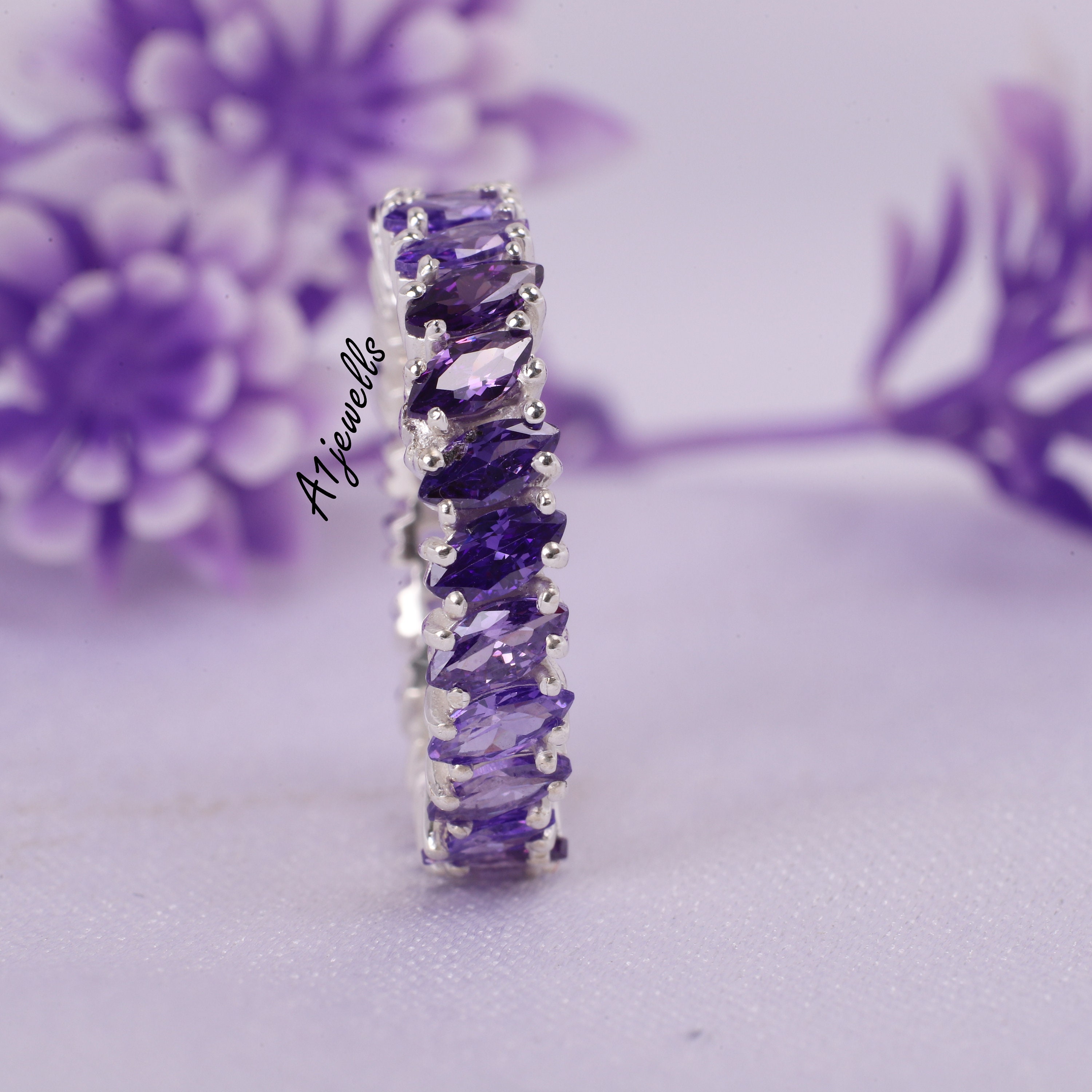Natural Purple Amethyst Gemstone 925 Sterling Silver Eternity Band February birthstone Purple Amethy...